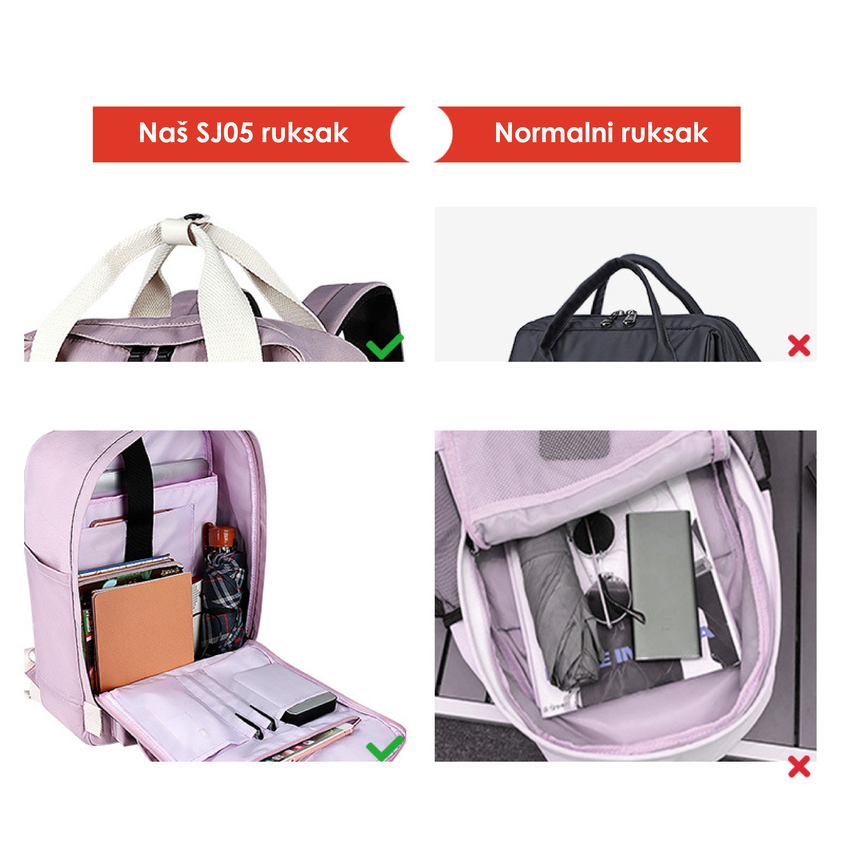 Torba ruksak SJ05 ima više džepova i pregrada koje vam omogućavaju organizovanje vaših stvari na praktičan način.