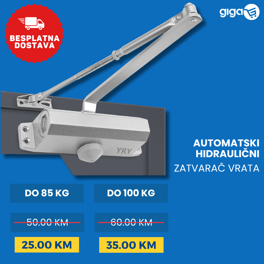 Ovaj automatski zatvarač vrata radi na principu hidraulične sile, što znači da se vrata zatvaraju polako i kontrolisano, bez naglog zatvaranja koje može oštetiti vrata ili okvir.
