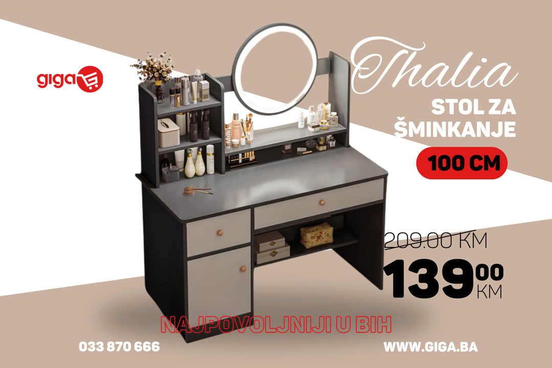 Ovaj funkcionalan komad namještaja sastoji se od gornje ladice koje pružaju dovoljno prostora za organizaciju kozmetike i pribora.
