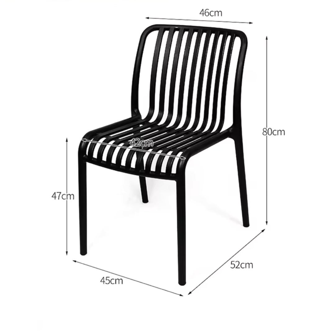 Stolicu odlikuje jednostavan dizajn i praktičnost, a neklizajući jastučići na nogarama osiguravaju sigurnost i stabilnost na različitim površinama.