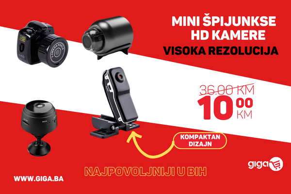 - Kompaktna i lagana: Dimenzije kamere omogućuju jednostavno nošenje i postavljanje na različite površine bez opterećenja.