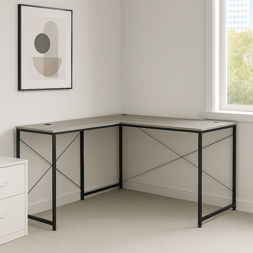 Brim radni stol je savršeno rješenje za sve koji traže funkcionalan i moderan kancelarijski namještaj. Njegov L-oblikovani dizajn pruža dovoljno prostora za rad, bilo da ga koristite za računar, dokumente ili kreativne projekte.