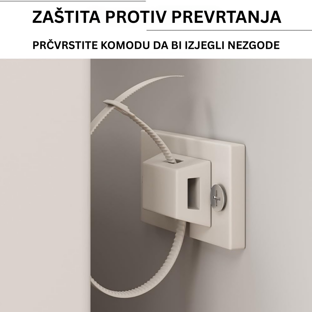 Ova polica izrađena je od visokokvalitetnih materijala koji osiguravaju stabilnost i dugotrajnost. Više prostranih polica različitih dimenzija omogućava organizaciju knjiga, dekorativnih elemenata, torbi, kutija i drugih potrepština. Neutralna boja i moderan dizajn lako se kombinuju s različitim stilovima enterijera, bilo da je riječ o spavaćoj sobi, hodniku, dnevnom boravku ili kancelariji.