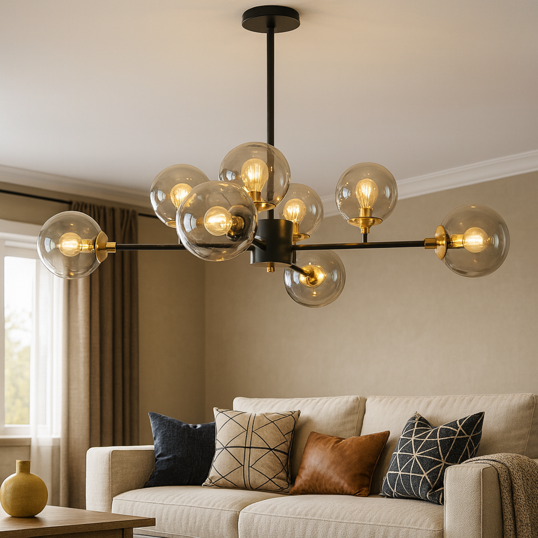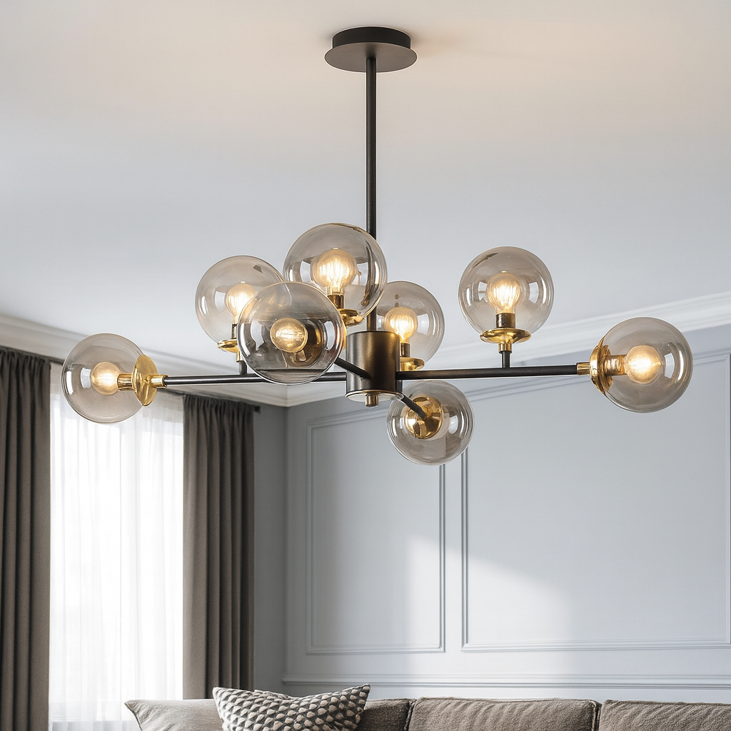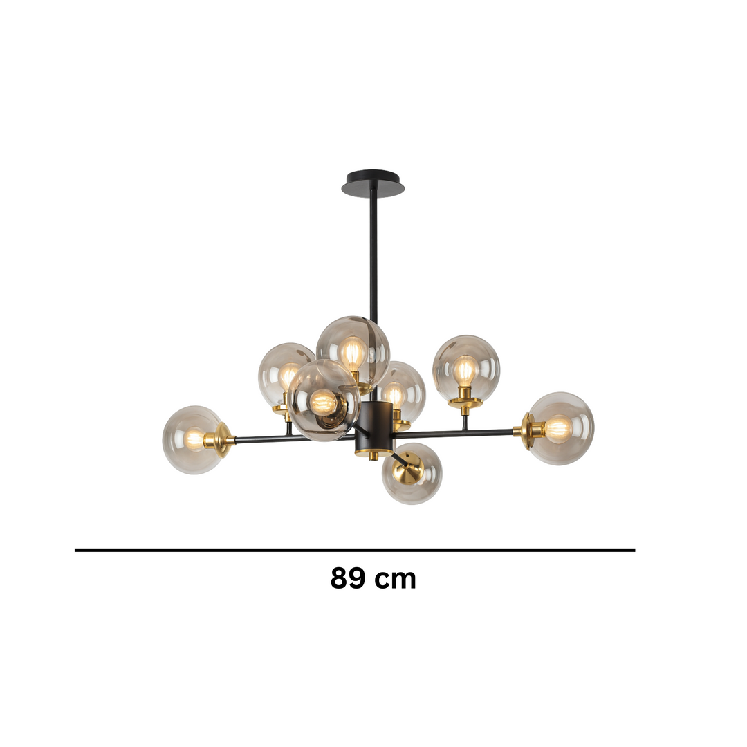 Luster D8263-8 nije samo izvor svjetlosti, već i dekorativni element koji će upotpuniti svaku savremenu prostoriju. Njegov sofisticirani dizajn savršeno se uklapa u moderni, industrijski i skandinavski enterijer. Dimenzija od 89 cm pruža optimalno osvjetljenje, dok raspored kugli stvara dinamičan vizuelni efekat.