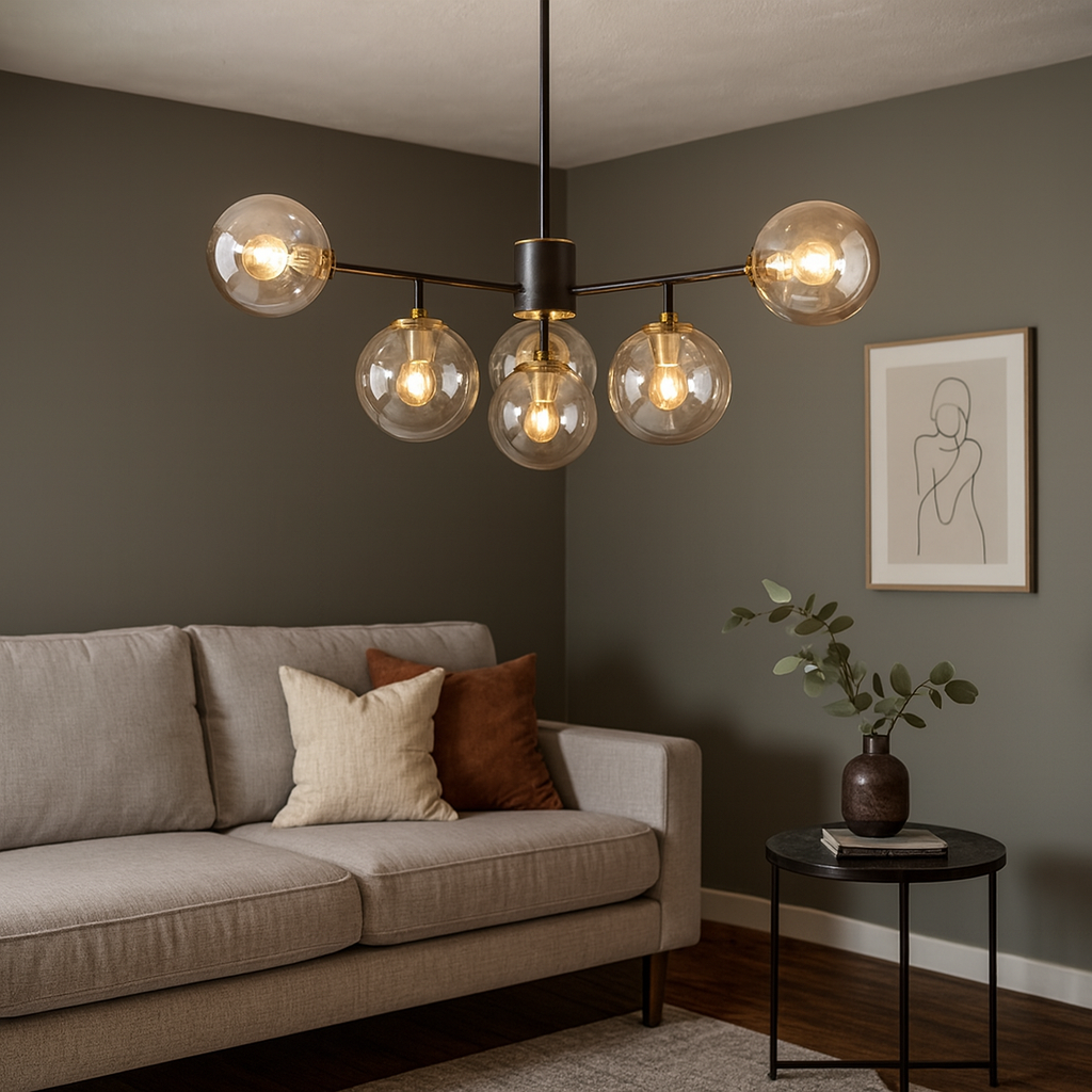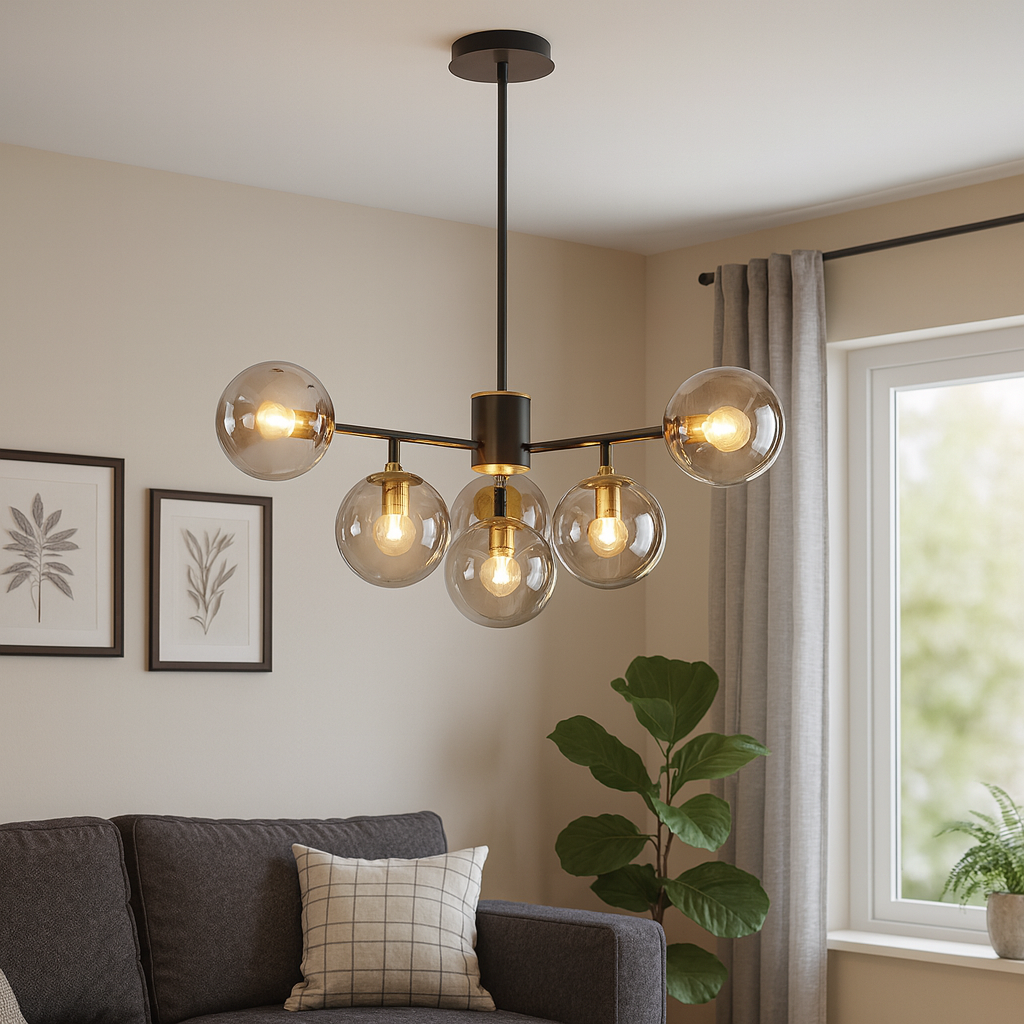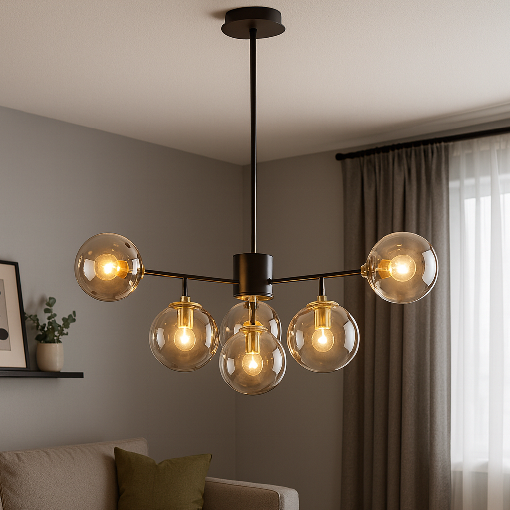 Unesite sofisticiranost i moderan dizajn u svoj prostor s elegantnim lusterom D8263-6, prečnika 70 cm. Ovaj luksuzni luster sa šest staklenih kugli u kombinaciji crne i dimičasto sive boje idealan je izbor za dnevne sobe, trpezarije, hodnike ili kancelarije koje zahtijevaju savremeni ambijent.