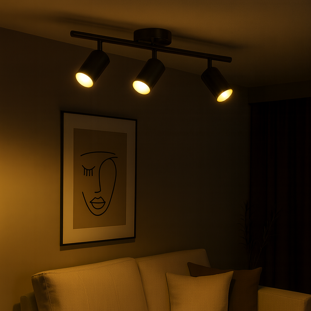 Svaka glava reflektora se može pojedinačno usmjeriti, što omogućava fleksibilno osvjetljenje određenih dijelova prostorije. GU10 podnožje podržava LED sijalice, što omogućava energetsku efikasnost i dug vijek trajanja.
