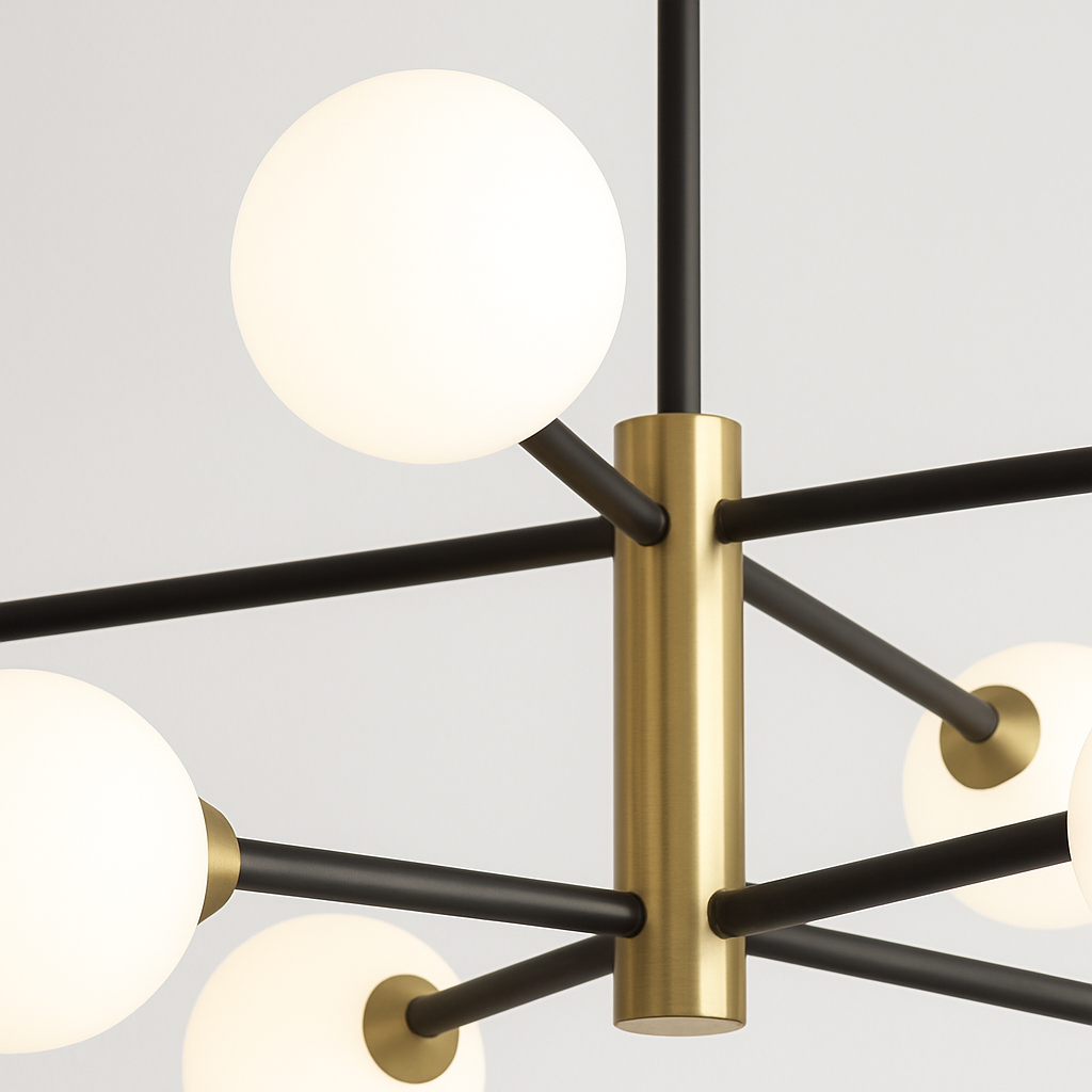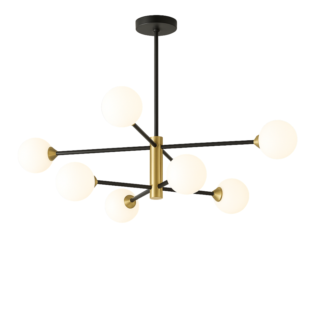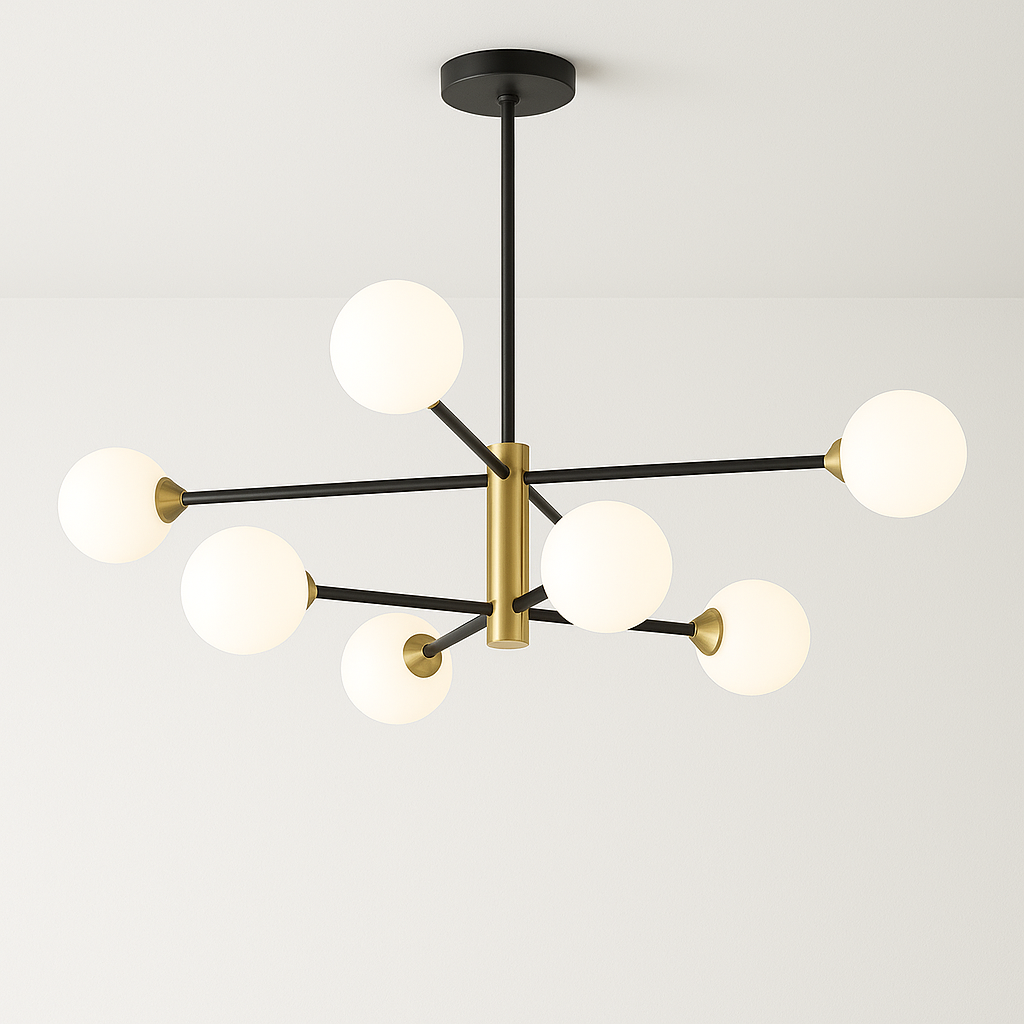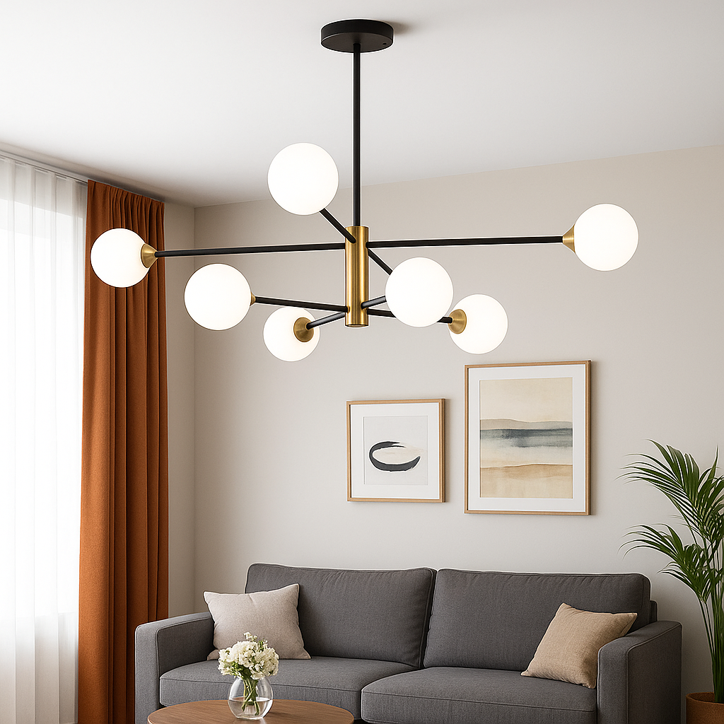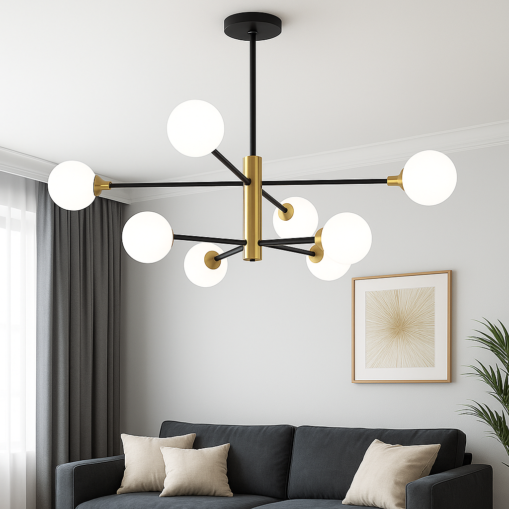 Ovaj luster nije samo izvor svjetlosti, već i dekorativni detalj koji će podići izgled svake prostorije. Njegova moderna geometrija i elegantni stakleni abažuri savršeno se uklapaju u različite stilove enterijera.