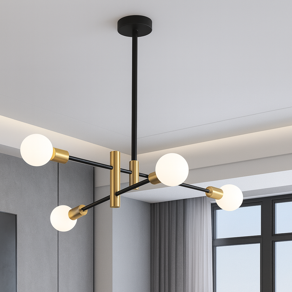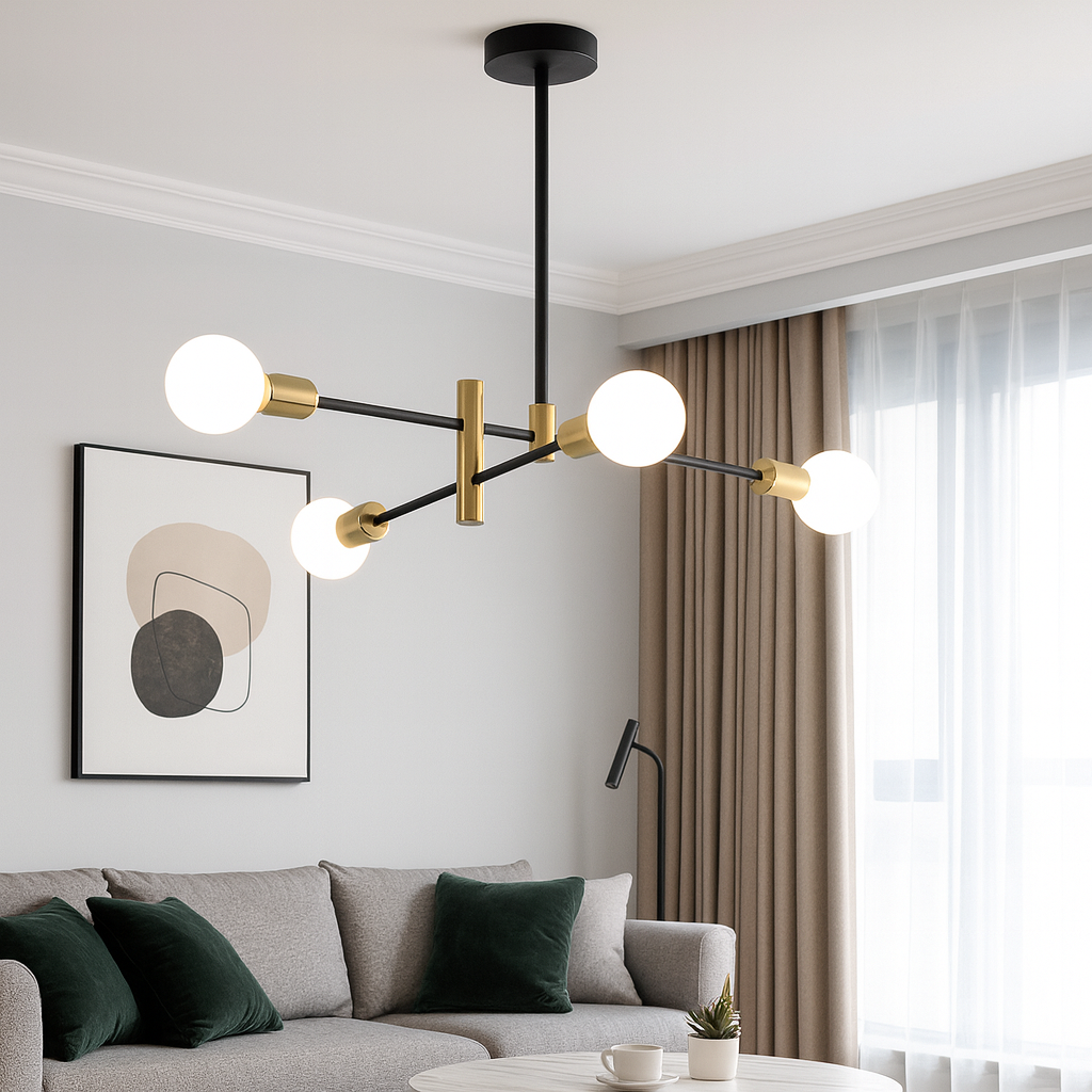 Dodajte eleganciju i moderan stil svom prostoru uz PENDANT LIGHT D8091-4. Ovaj luster spaja crno-zlatnu kombinaciju sa jednostavnim i čistim linijama, što ga čini savršenim izborom za dnevni boravak, trpezariju, spavaću sobu ili poslovni prostor.