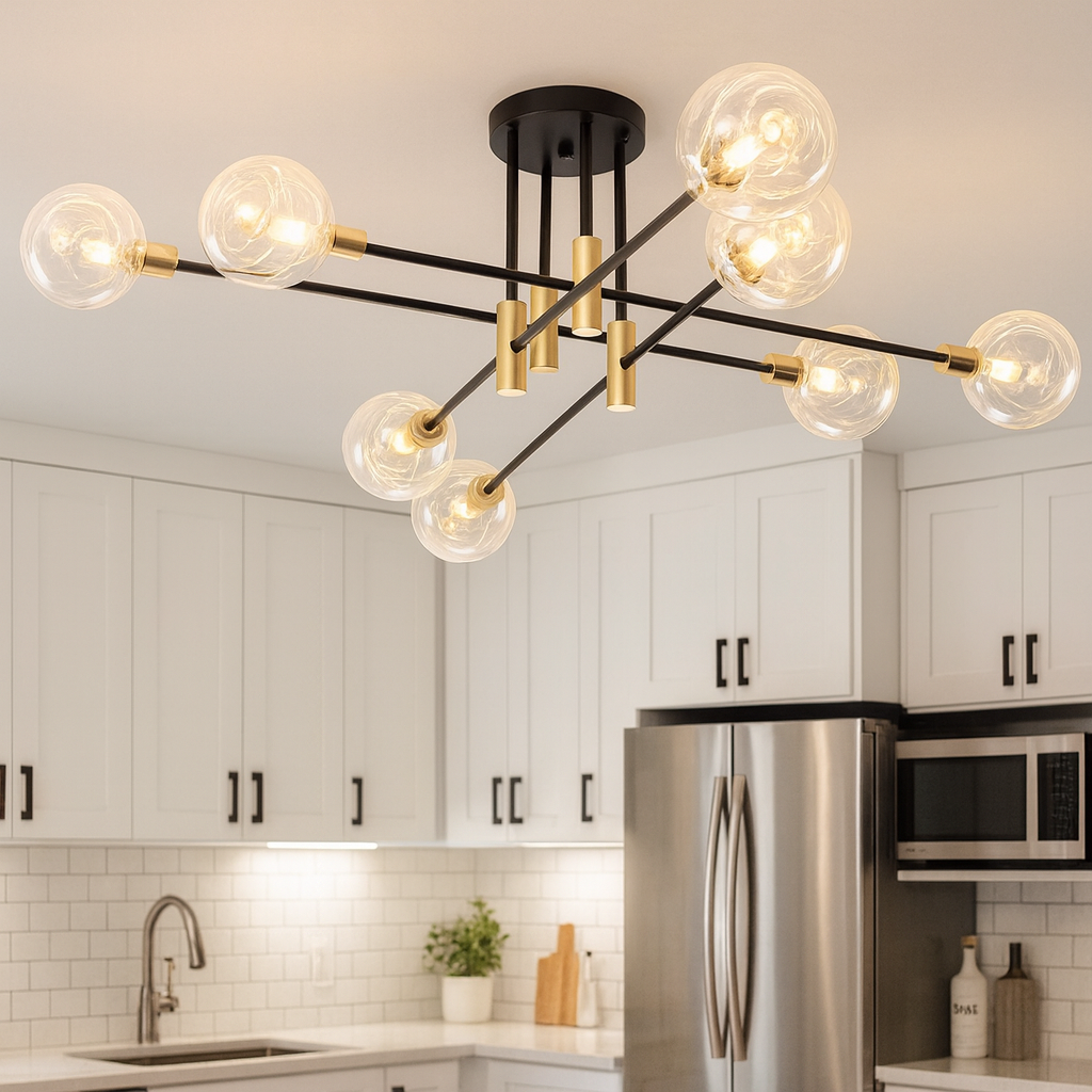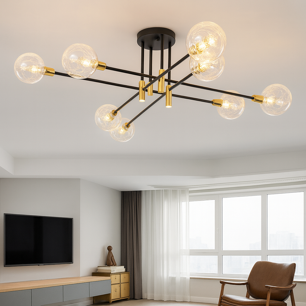 Opremljena sa 8 grla tipa G9, omogućava jaku i ravnomjernu svjetlost – savršeno rješenje za dnevne sobe, trpezarije, spavaće sobe ili poslovne prostore.