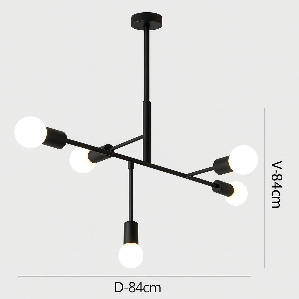Unesite minimalizam i moderan stil u svoj prostor uz luster Pendant Light D8262-5. Izrađen od kvalitetnog metala, ovaj luster pruža čvrstinu i dugotrajnost, dok njegov crni mat dizajn naglašava eleganciju i jednostavnost. Sa pet sijaličnih mjesta (E27), ravnomjerno raspoređuje svjetlost i čini prostor toplim i prijatnim.