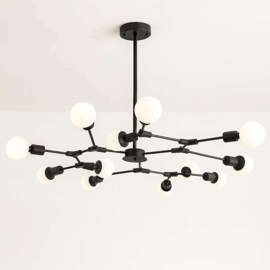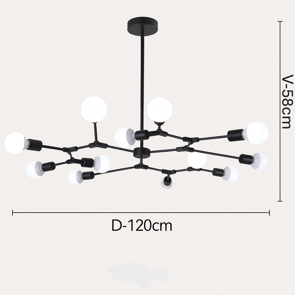 Dodajte eleganciju i snažno osvjetljenje svom prostoru uz Pendant Light D8054/9. Ovaj impozantni luster prečnika 120 cm izrađen je od kvalitetnog metala u sofisticiranoj crnoj boji. Sa čak 12 sijalica E27, pruža izvanredno osvjetljenje i savršeno se uklapa u veće prostorije modernog stila.