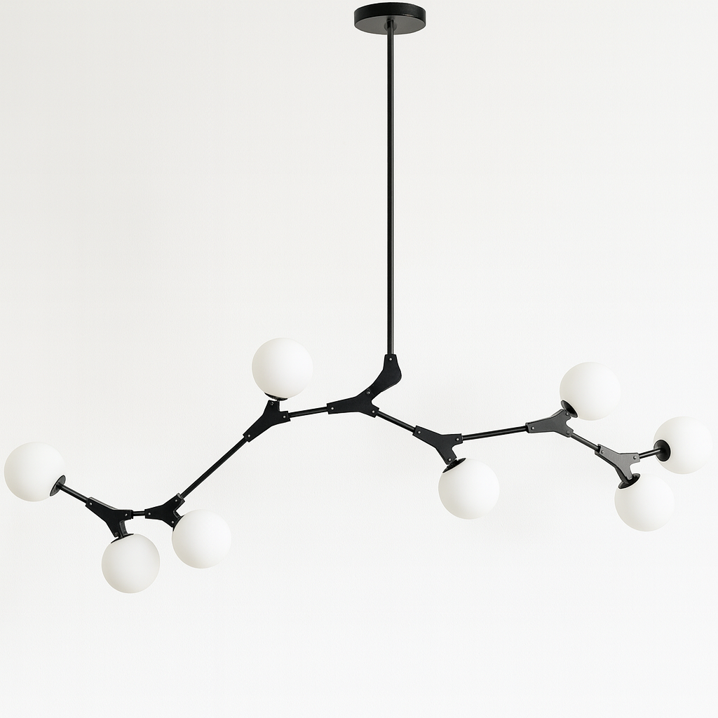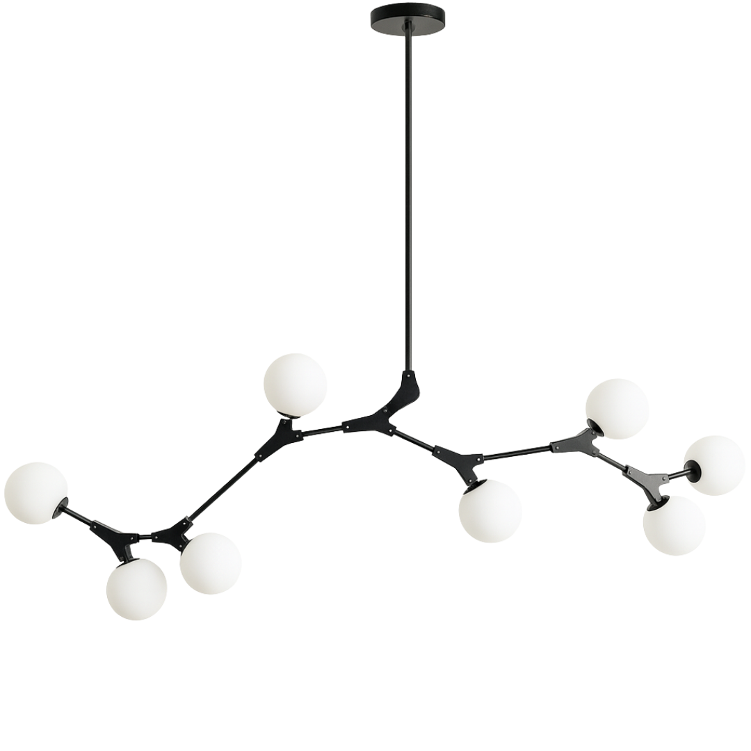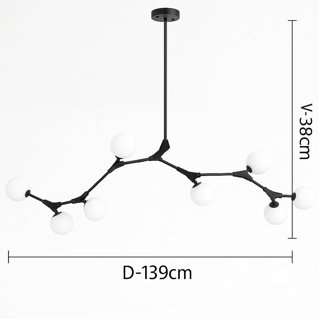 Dodajte eleganciju i moderan stil svom prostoru uz Pendant Light D8071-8 Black. Ovaj savremeni luster izrađen je od kvalitetnog metala i stakla, sa 8 svjetlosnih tačaka koje obezbjeđuju snažno i ravnomjerno osvjetljenje. Njegov asimetričan i minimalistički dizajn čini ga savršenim izborom za moderne enterijere.