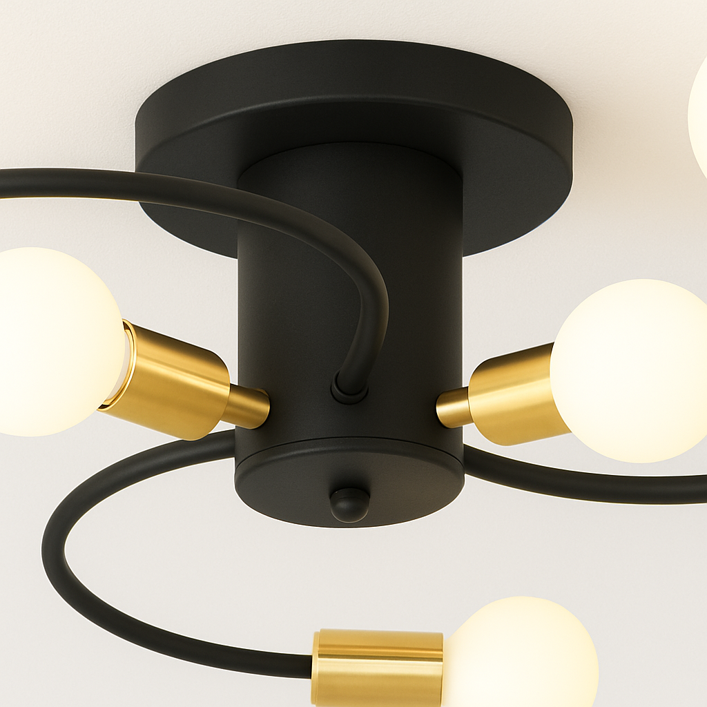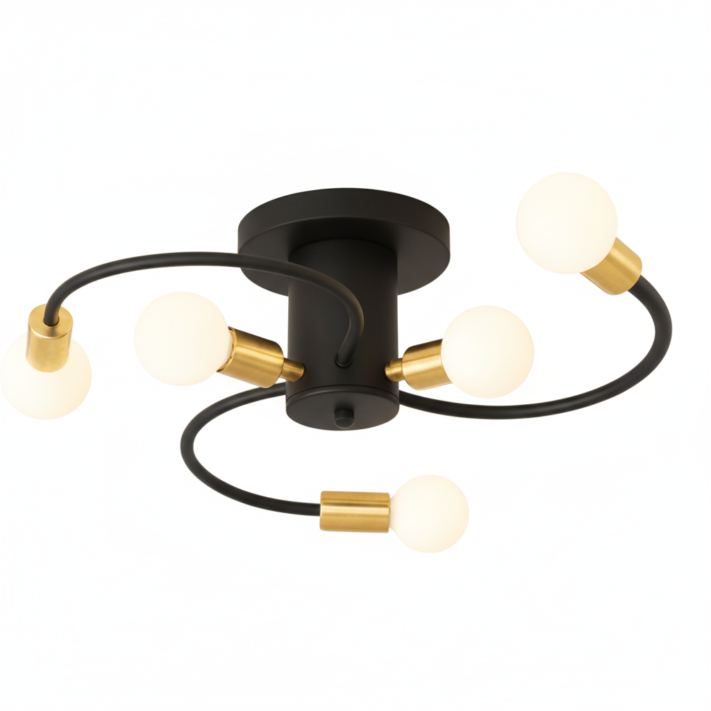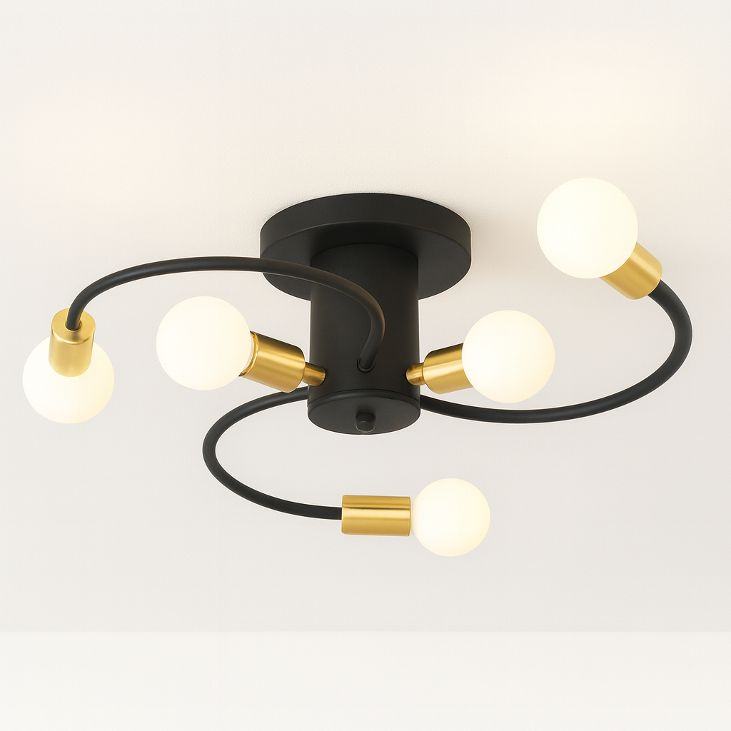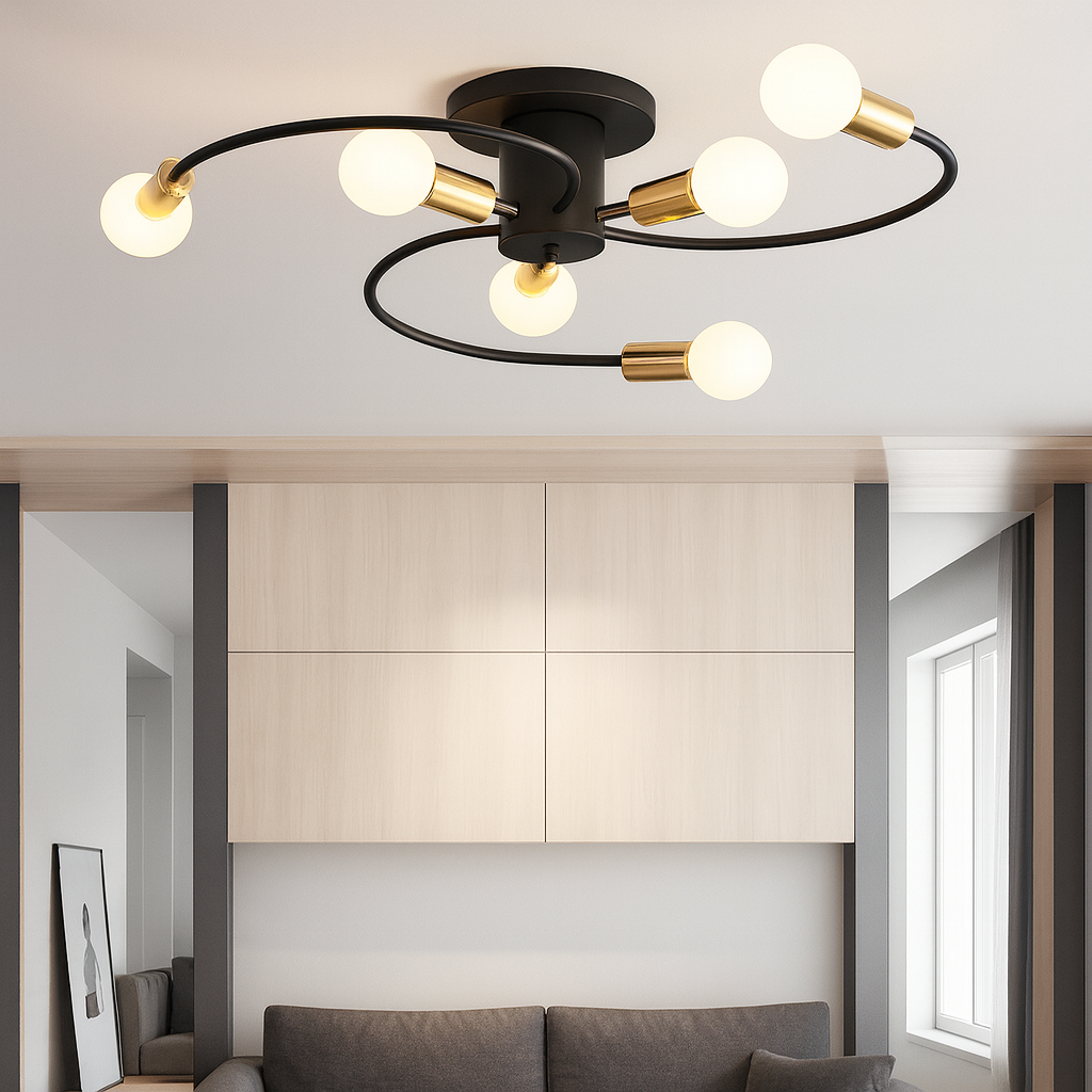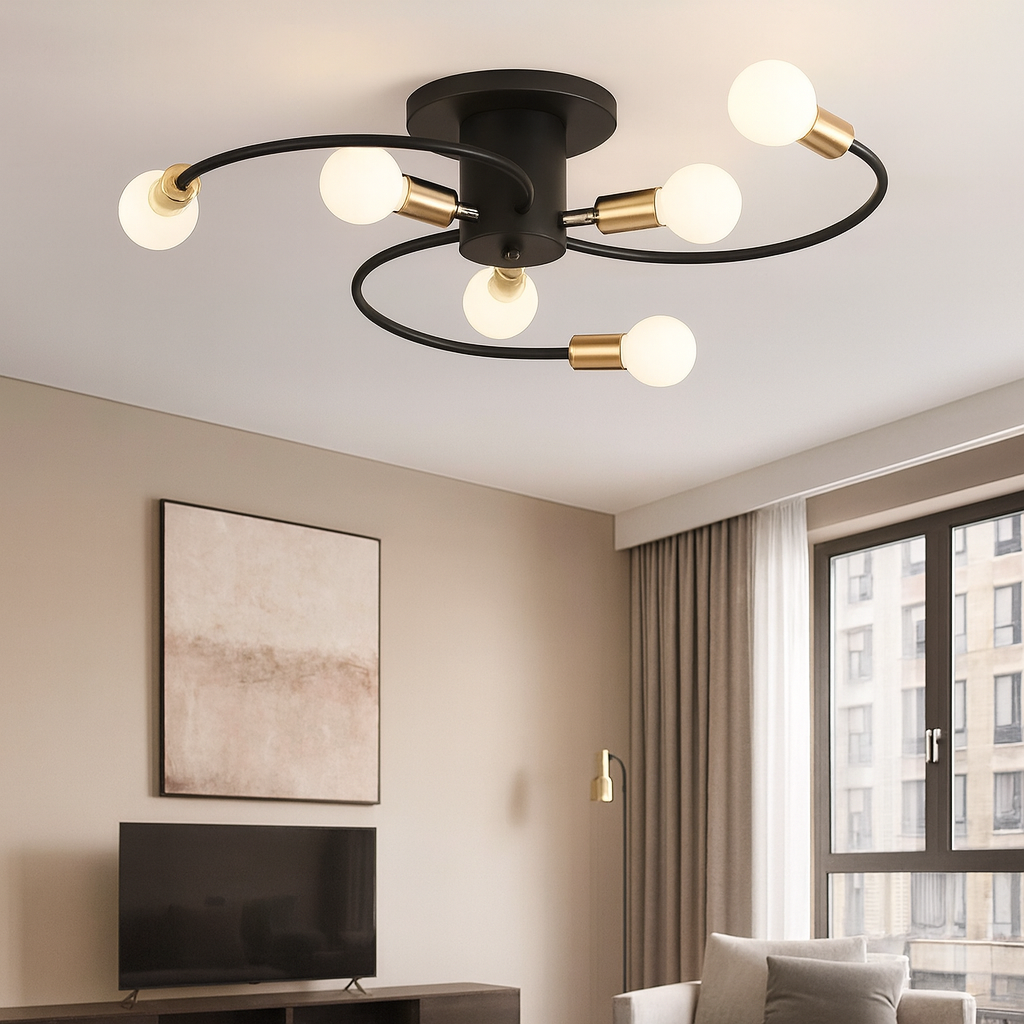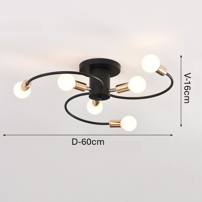 Uljepšajte svoj dom modernim i elegantnim stilom uz Ceiling Light C6008/6B+G. Ovaj prelijepi model izrađen je od metala, a njegova kombinacija crne i zlatne boje daje luksuzan i sofisticiran izgled. Spiralni raspored sa 6 sijaličnih grla ravnomjerno širi svjetlost, čineći ga idealnim za dnevne boravke, spavaće sobe, trpezarije ili moderne kancelarije.