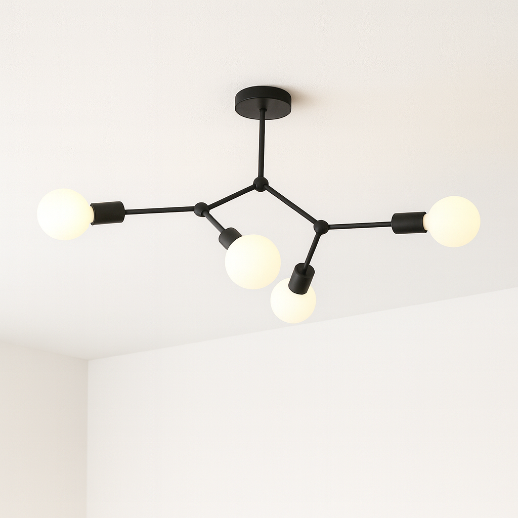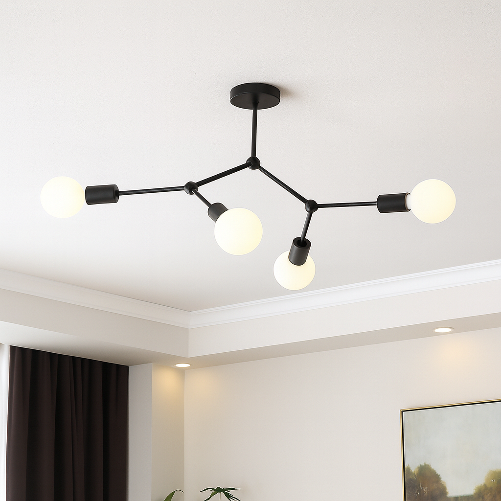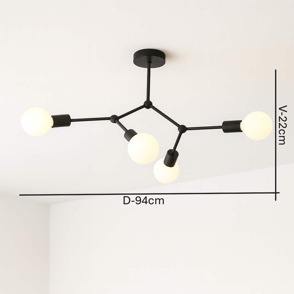 Ceiling Light C6002/4B donosi savršen spoj minimalističkog dizajna i funkcionalnosti. Izrađena od kvalitetnog metala u crnoj mat boji, ova plafonska lampa pruža moderni estetski dojam i istovremeno obezbjeđuje snažno osvjetljenje zahvaljujući 4 E27 sijalična mjesta.