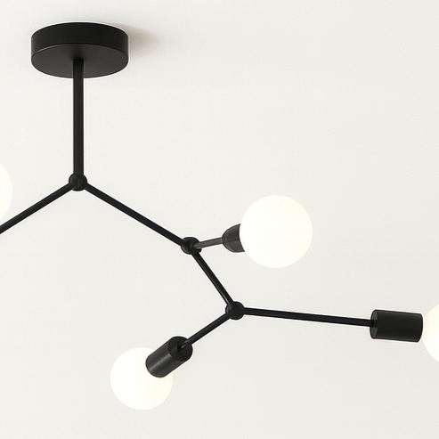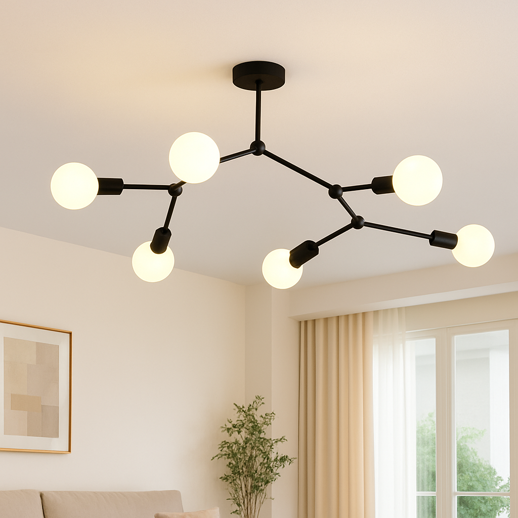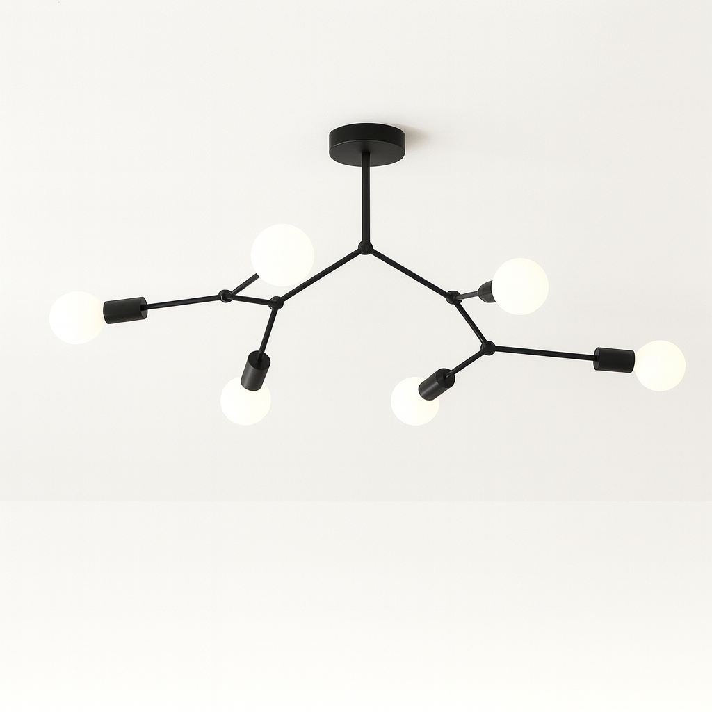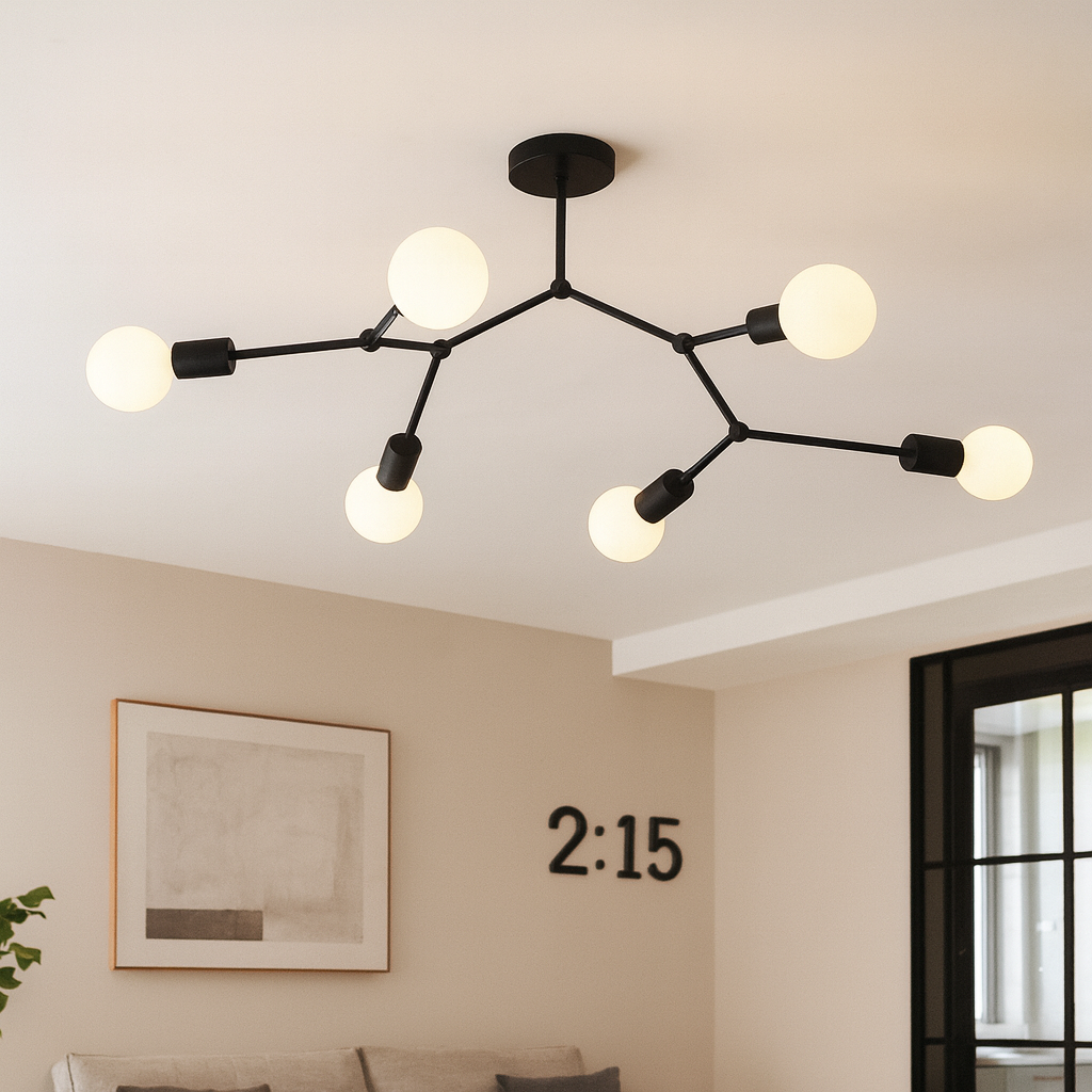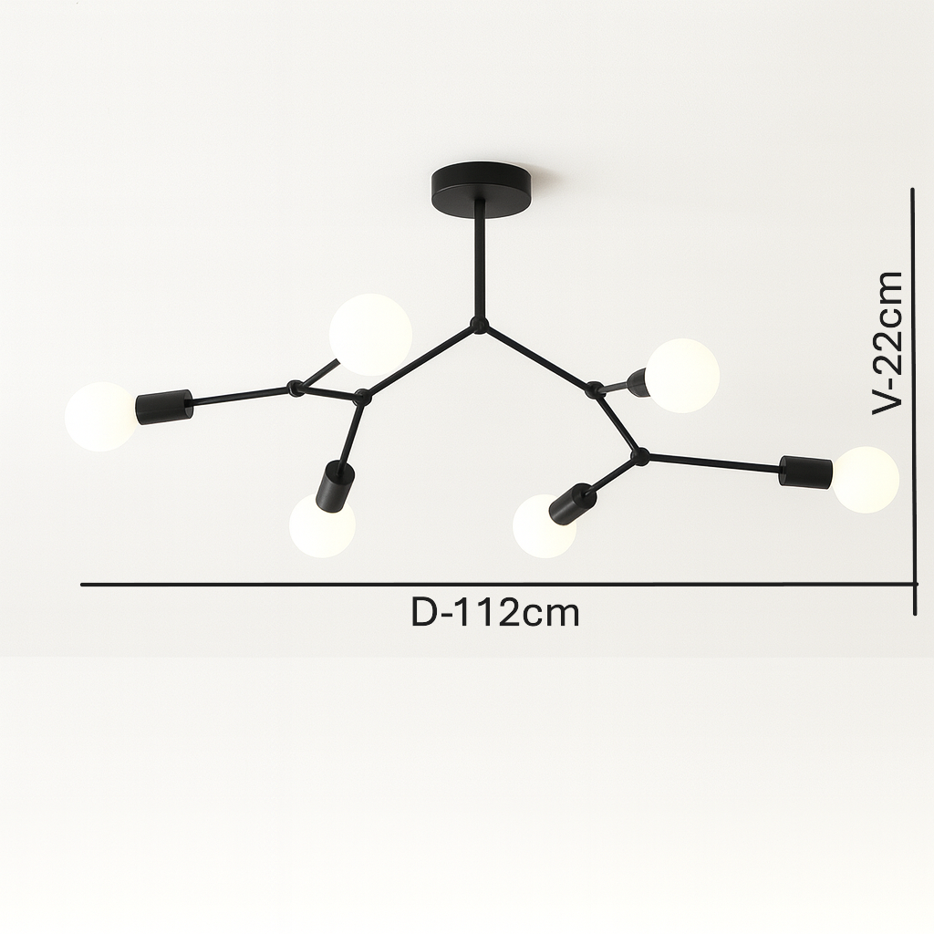 Ceiling Light C6002/6B je dizajnirana da unese eleganciju i snažno osvjetljenje u svaki prostor. Sa svojim minimalističkim izgledom i crnom mat završnom obradom, ova plafonska lampa postaje atraktivan dekorativni detalj i istovremeno pruža dovoljno svjetla zahvaljujući 6 E27 sijaličnih mjesta.