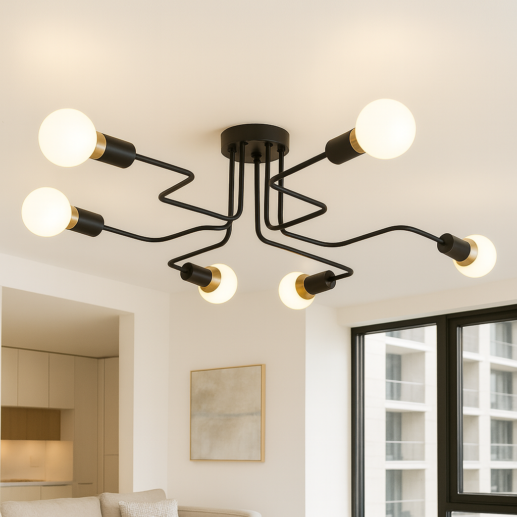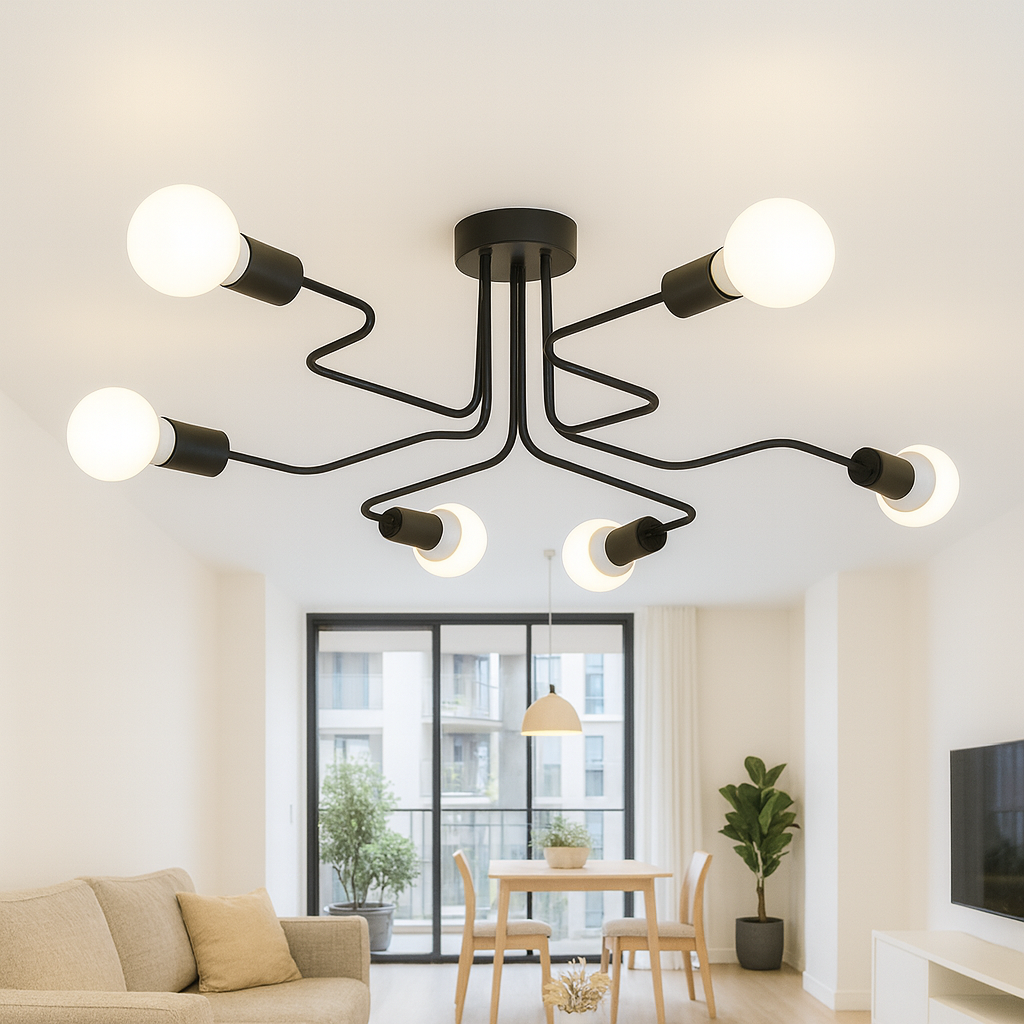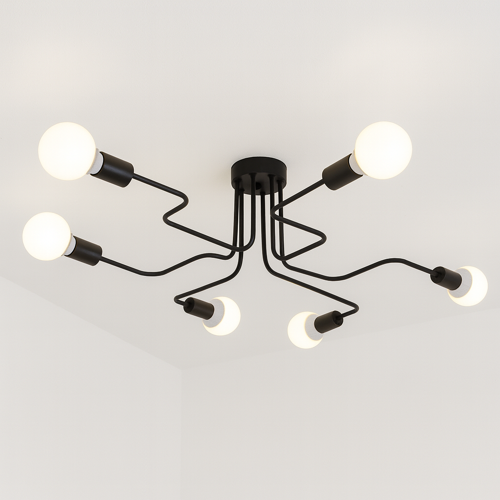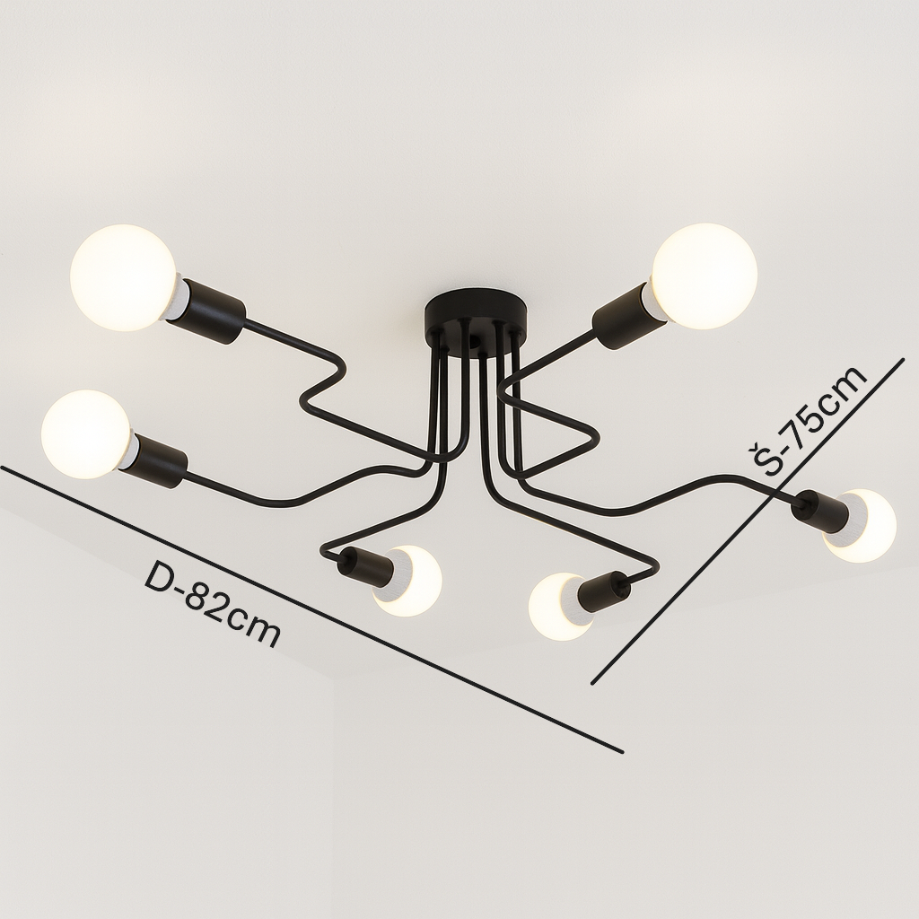 Ceiling Light C6042/6 Black predstavlja savršen spoj modernog dizajna i funkcionalnosti. Sa svojom geometrijskom formom i crnom mat obradom, ova plafonska lampa donosi eleganciju i snažno osvjetljenje u svaki prostor. Zahvaljujući šest sijaličnih mjesta (E27), pruža dovoljno svjetla čak i za veće prostorije.