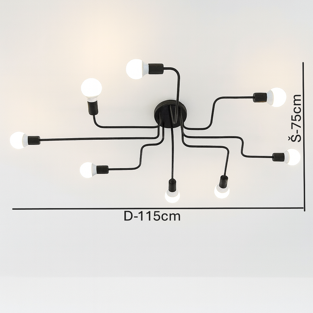 Ceiling Light C6042/8 Black je dizajnirana za one koji žele moćno i estetski upečatljivo osvjetljenje. Sa svojom velikom dimenzijom (115×75×20 cm) i modernim crnim završetkom, ova plafonska svjetiljka unosi eleganciju, luksuz i praktičnost u svaki enterijer. Zahvaljujući osam sijaličnih mjesta (E27), savršeno osvjetljava i najveće prostorije.