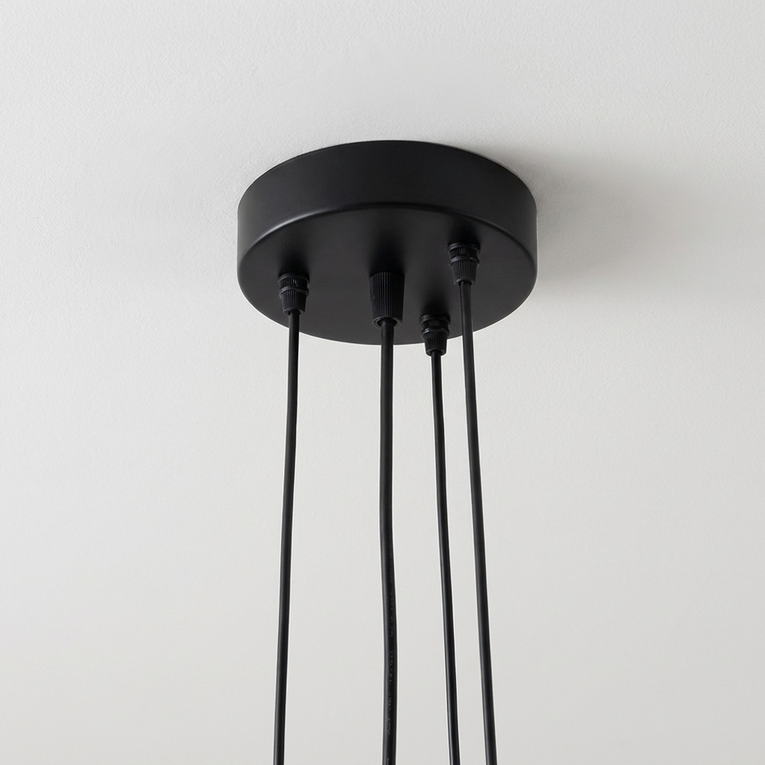 Dimenzije Ø85 × V26 cm čine ga pogodnim za veće prostorije, dok podesivi kabl dužine 100 cm omogućava fleksibilnost postavljanja u različitim visinama. Moderni kontrast metala i stakla donosi sofisticiran i trendovski izgled enterijeru.