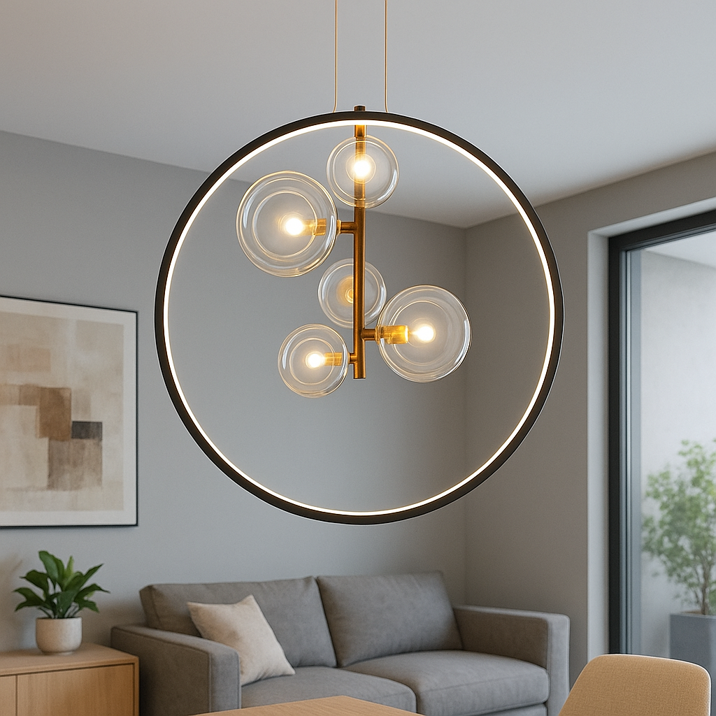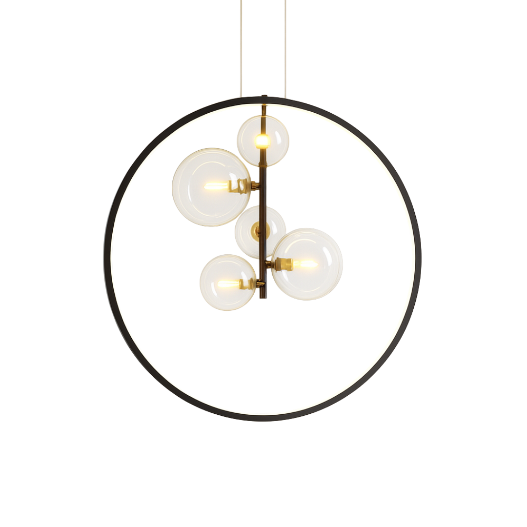 Crna boja u kombinaciji sa staklom daje ovom lusteru luksuzan izgled, dok grla G9×5 omogućavaju ravnomjerno i prijatno osvjetljenje. Njegov minimalistički, ali efektan dizajn čini ga pravim izborom za sve moderne enterijere.