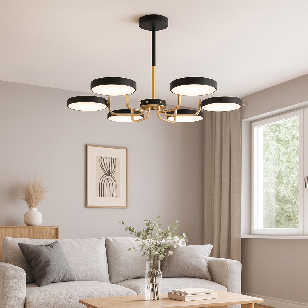 Transformišite svoj prostor uz zapanjujući luster D8061/6 – pravo umjetničko djelo koje spaja luksuz, minimalizam i funkcionalnost. Njegov jedinstveni dizajn sa šest savršeno raspoređenih svjetlosnih krugova lebdi poput modernog skulpturalnog oblaka, stvarajući spektakularan vizuelni efekat.