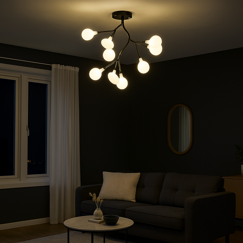 Dodajte savremeni umjetnički pečat vašem prostoru sa unikatnim lusterom D8050/9 Black, dizajniranim u obliku razgranate strukture sa devet elegantnih svjetlosnih tačaka.