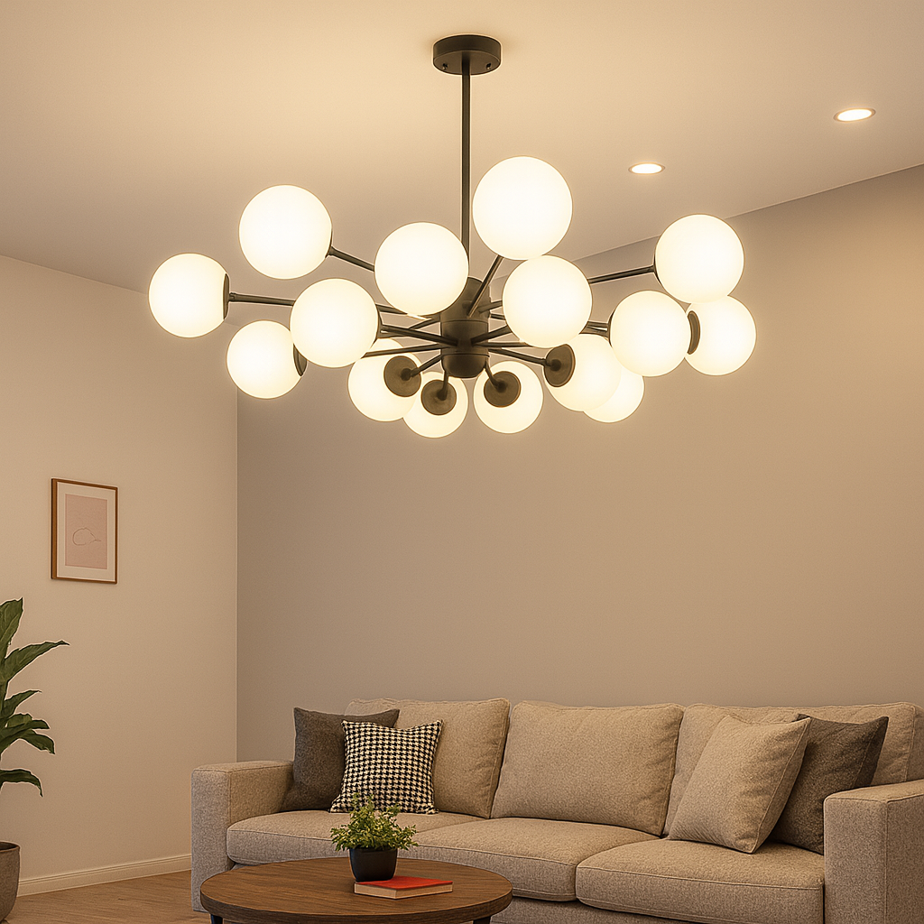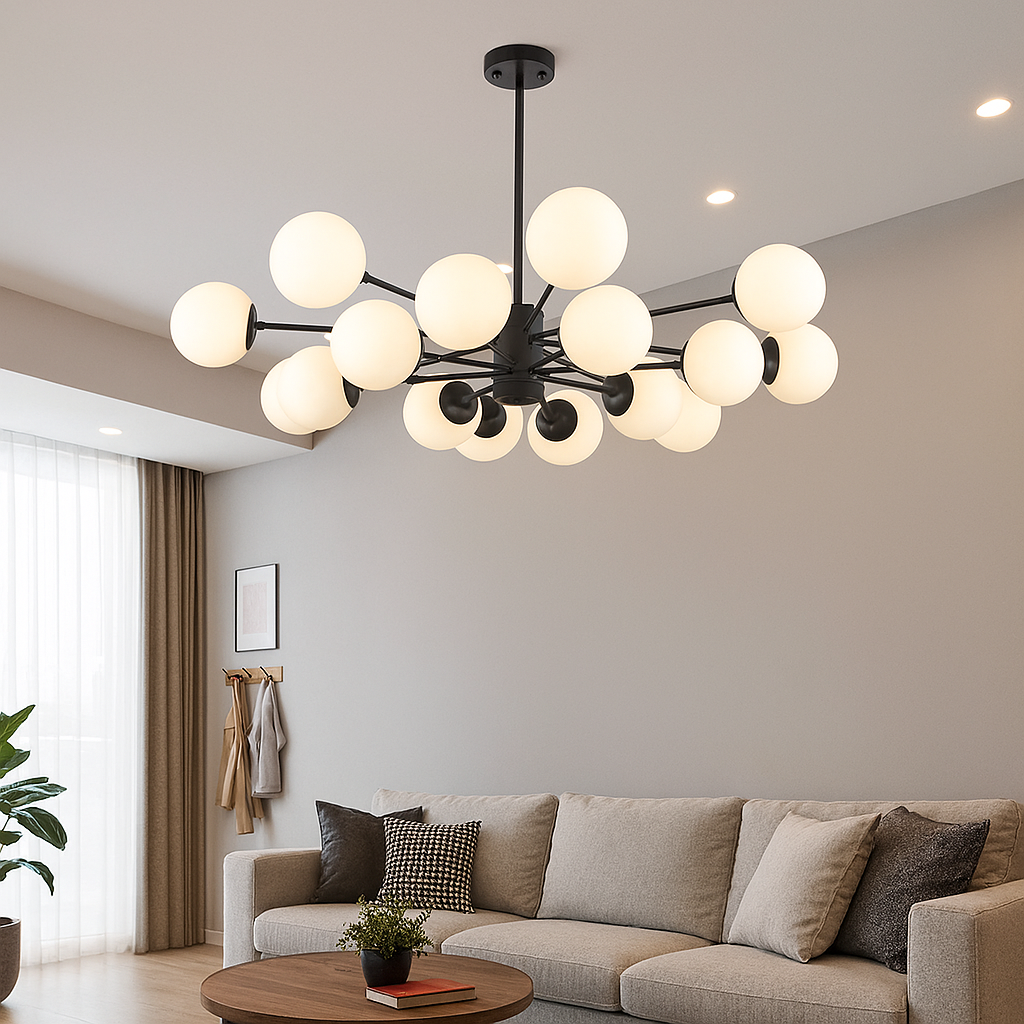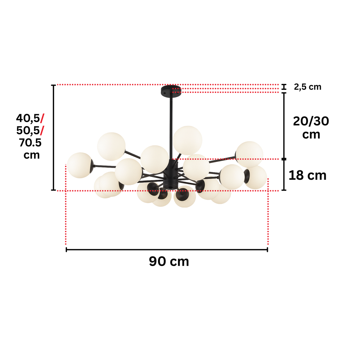 Boja: Crna konstrukcija + mliječno bijele kugle