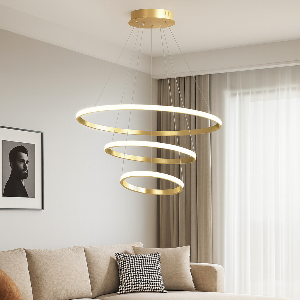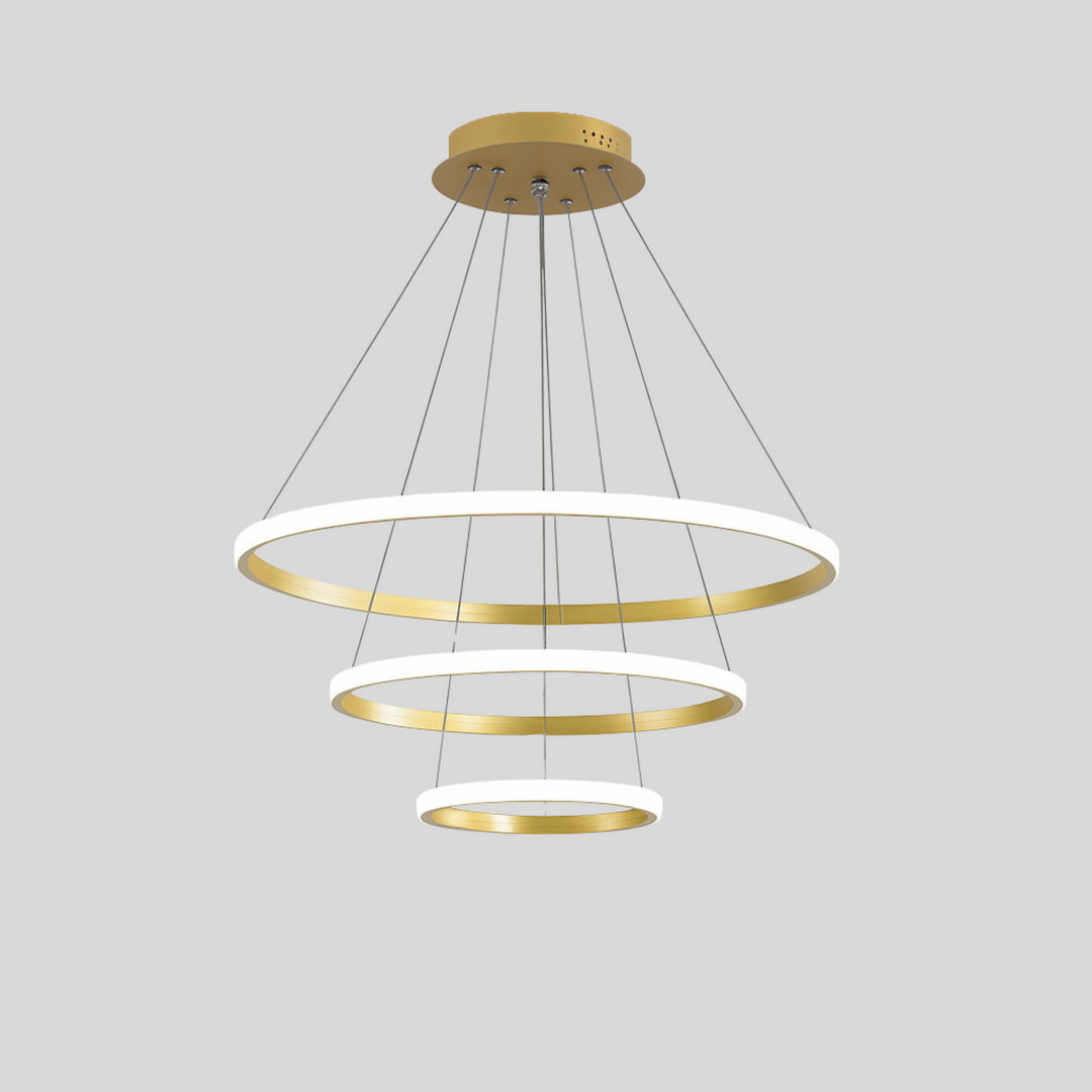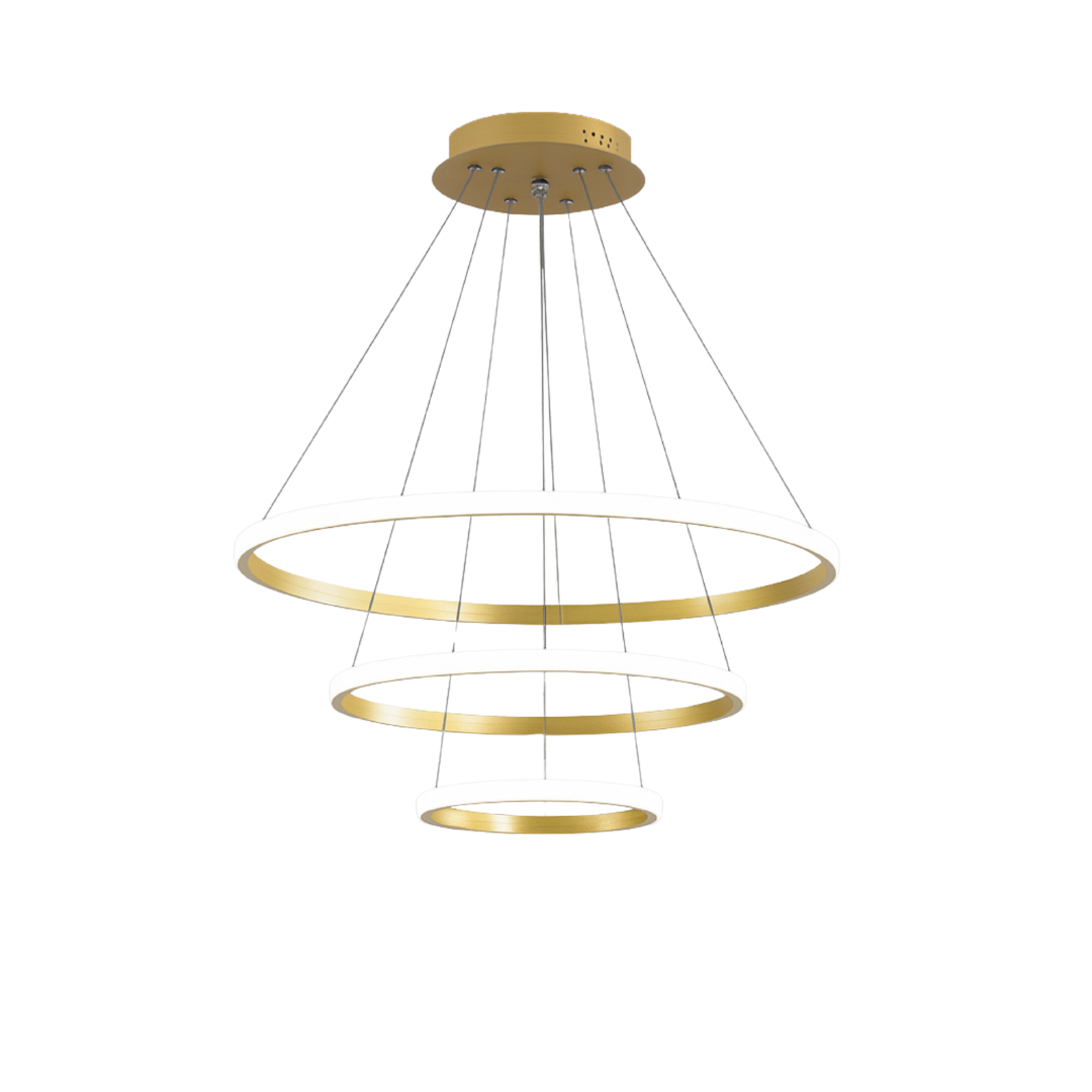 Ovaj luster pruža ravnomjerno i prijatno bijelo LED svjetlo koje stvara savršenu atmosferu u prostoru. Njegova kombinacija metala i silikona osigurava dugotrajnost i jednostavno održavanje, dok zlatna završna obrada dodaje luksuzan izgled. Podesiva visina omogućava da ga postavite savršeno prema visini stropa i vašim željama.