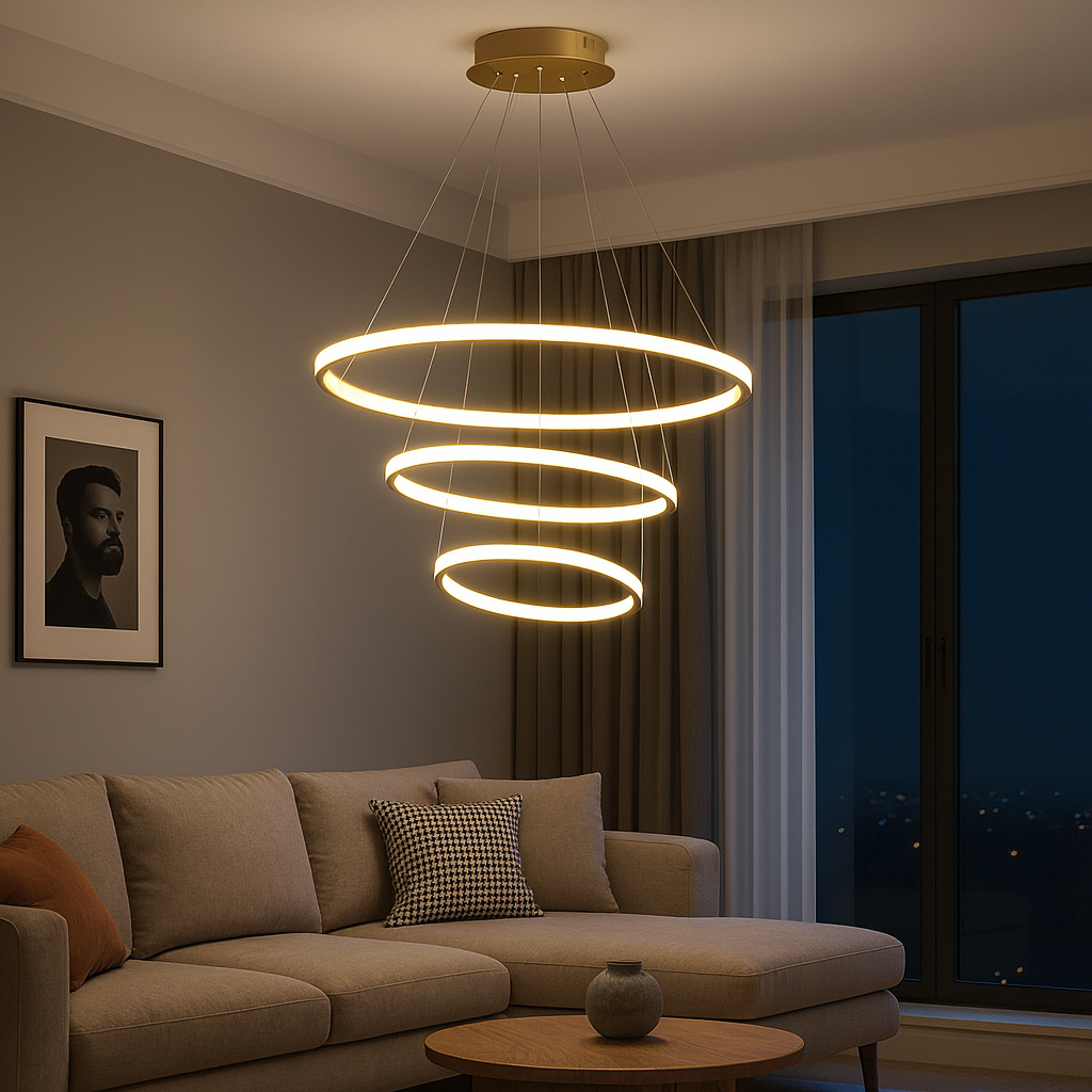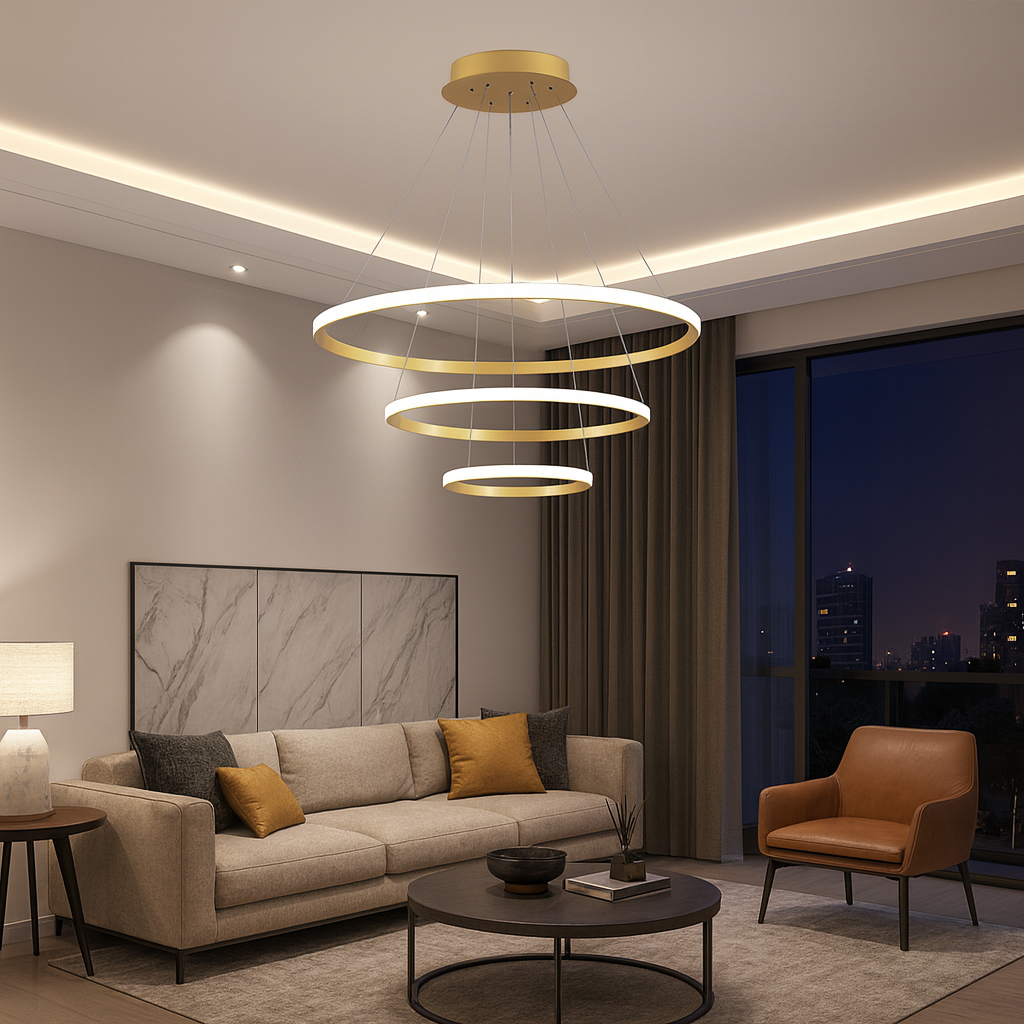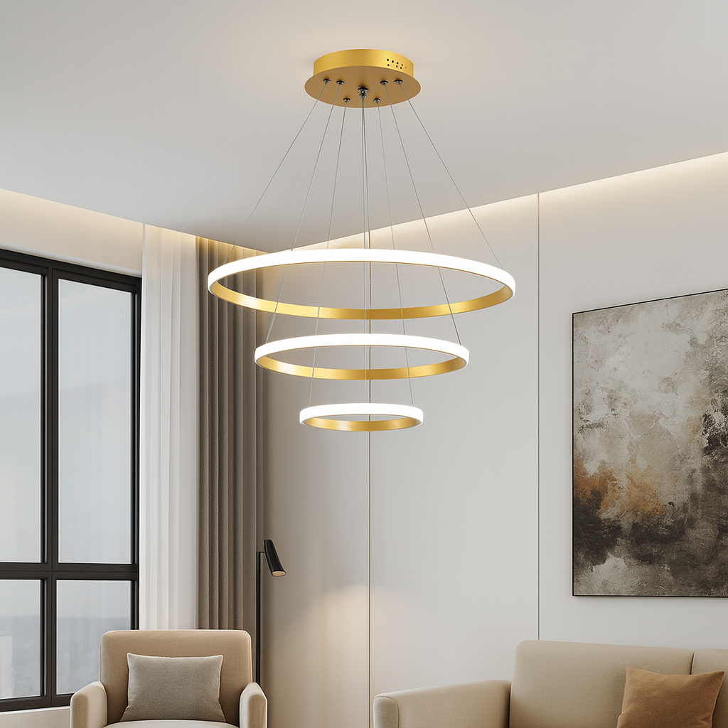 Ovaj luster pruža ravnomjerno i prijatno bijelo LED svjetlo koje stvara savršenu atmosferu u prostoru. Njegova kombinacija metala i silikona osigurava dugotrajnost i jednostavno održavanje, dok zlatna završna obrada dodaje luksuzan izgled. Podesiva visina omogućava da ga postavite savršeno prema visini stropa i vašim željama.