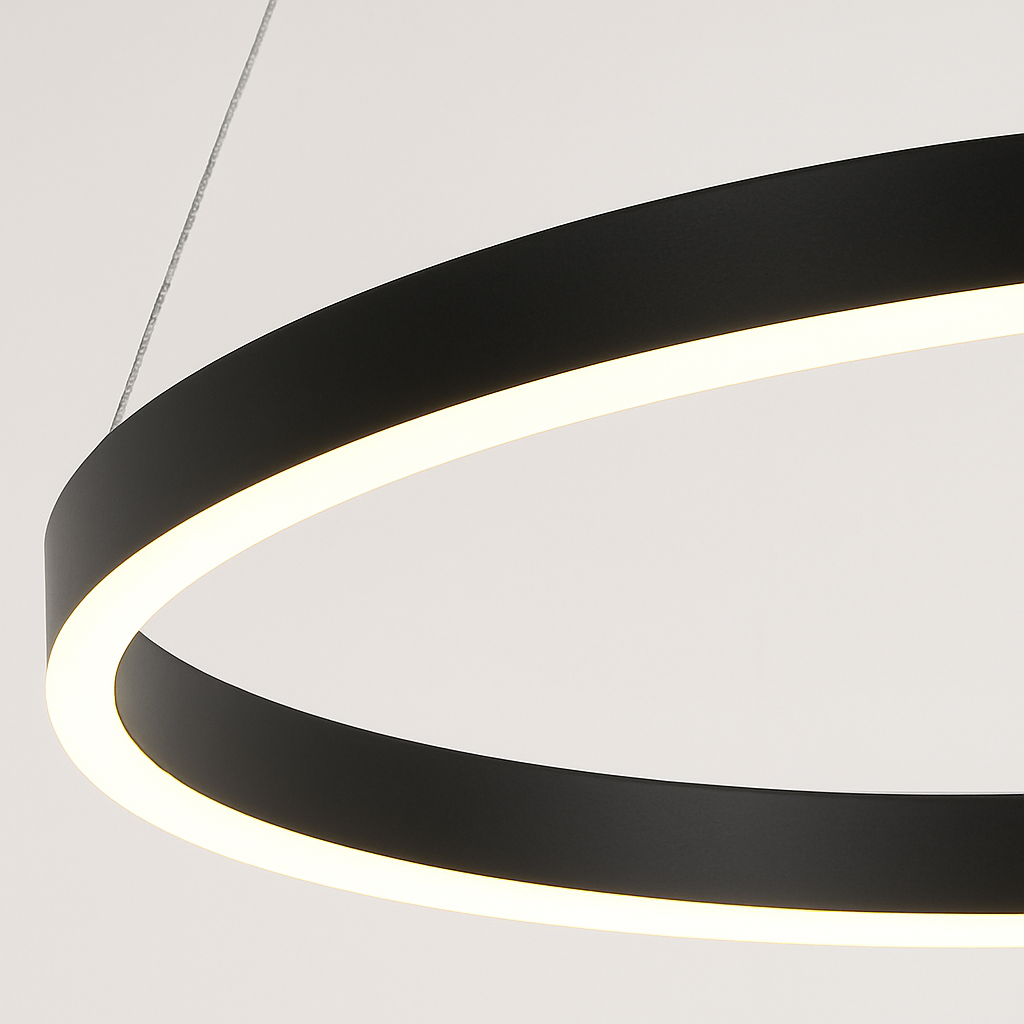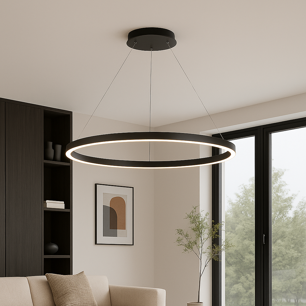 Unesite eleganciju i moderan minimalizam u svoj dom uz LED viseći luster PENDANT LIGHT D8034-80B. Sa prečnikom od 80 cm, izrađen od aluminija i akrila, ovaj upečatljiv model u crnoj boji donosi snažnu i ravnomjernu LED rasvjetu uz mogućnost podešavanja u 3 boje svjetla (topla, neutralna, hladna).