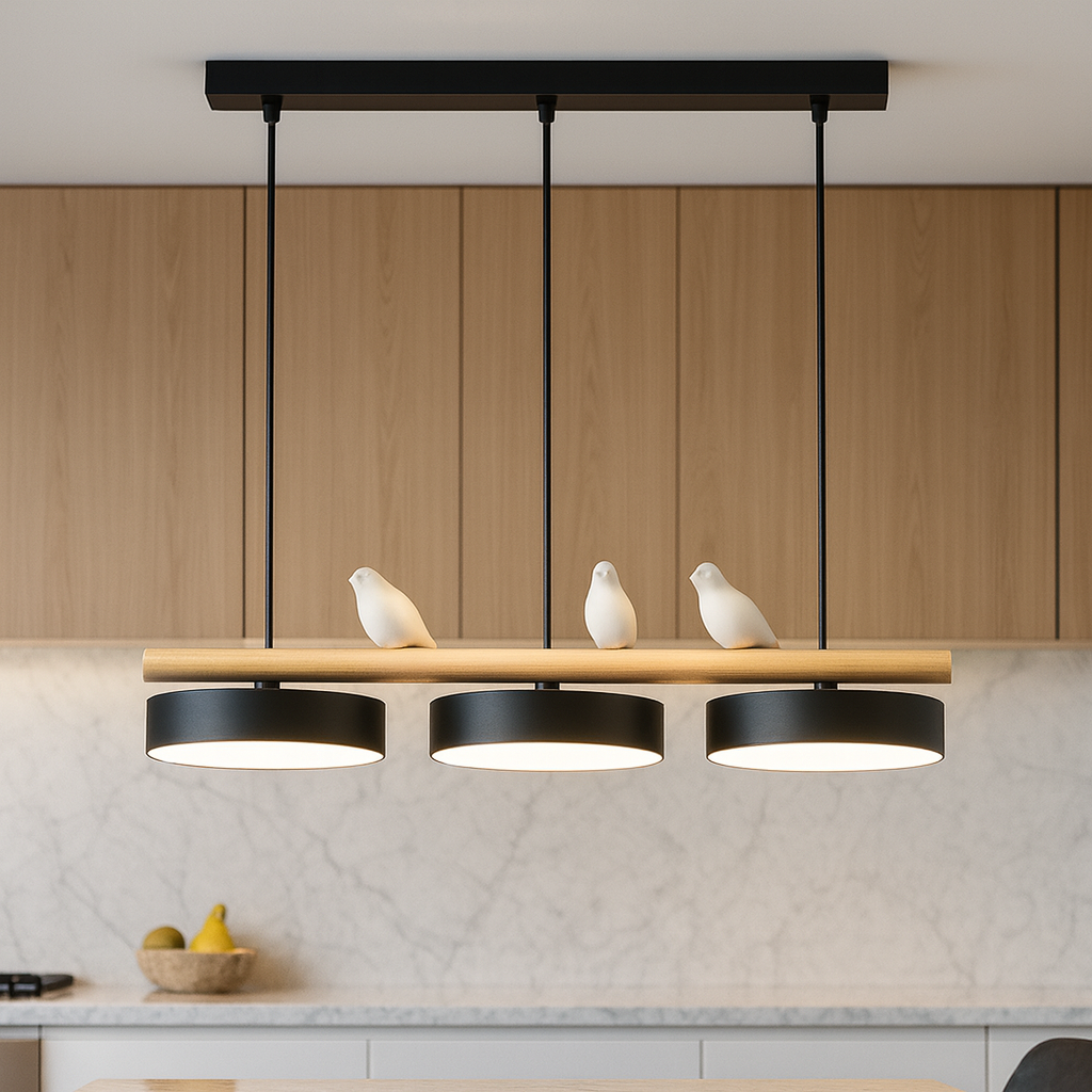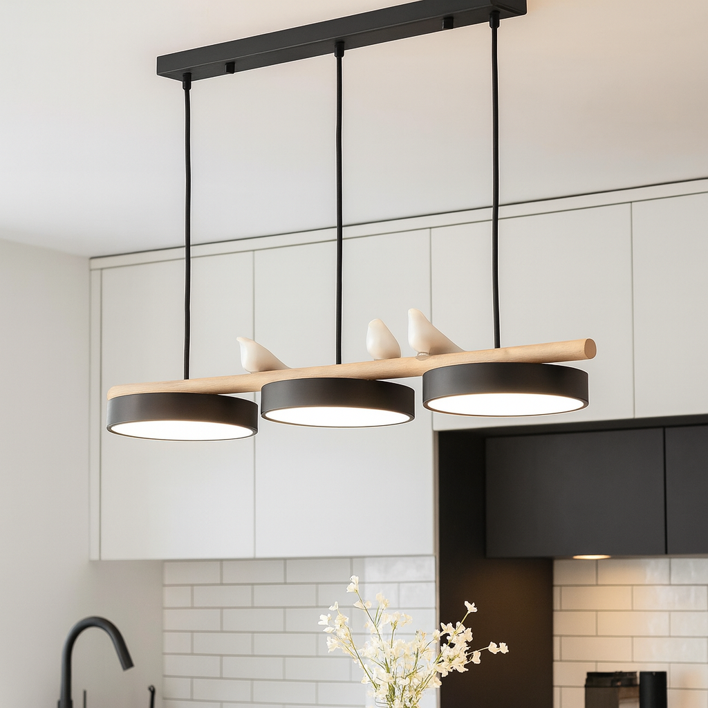Unesite toplinu i moderan dizajn u svoj prostor uz LED viseću lampu PENDANT LIGHT D9527-3. Ova jedinstvena lampa kombinuje metal, prirodno drvo i akril, stvarajući savršen balans između modernog i prirodnog izgleda. Sa tri LED izvora svjetla od po 12W, pruža ravnomjerno i prijatno osvjetljenje, idealno za trpezarije, kuhinje i dnevne sobe.