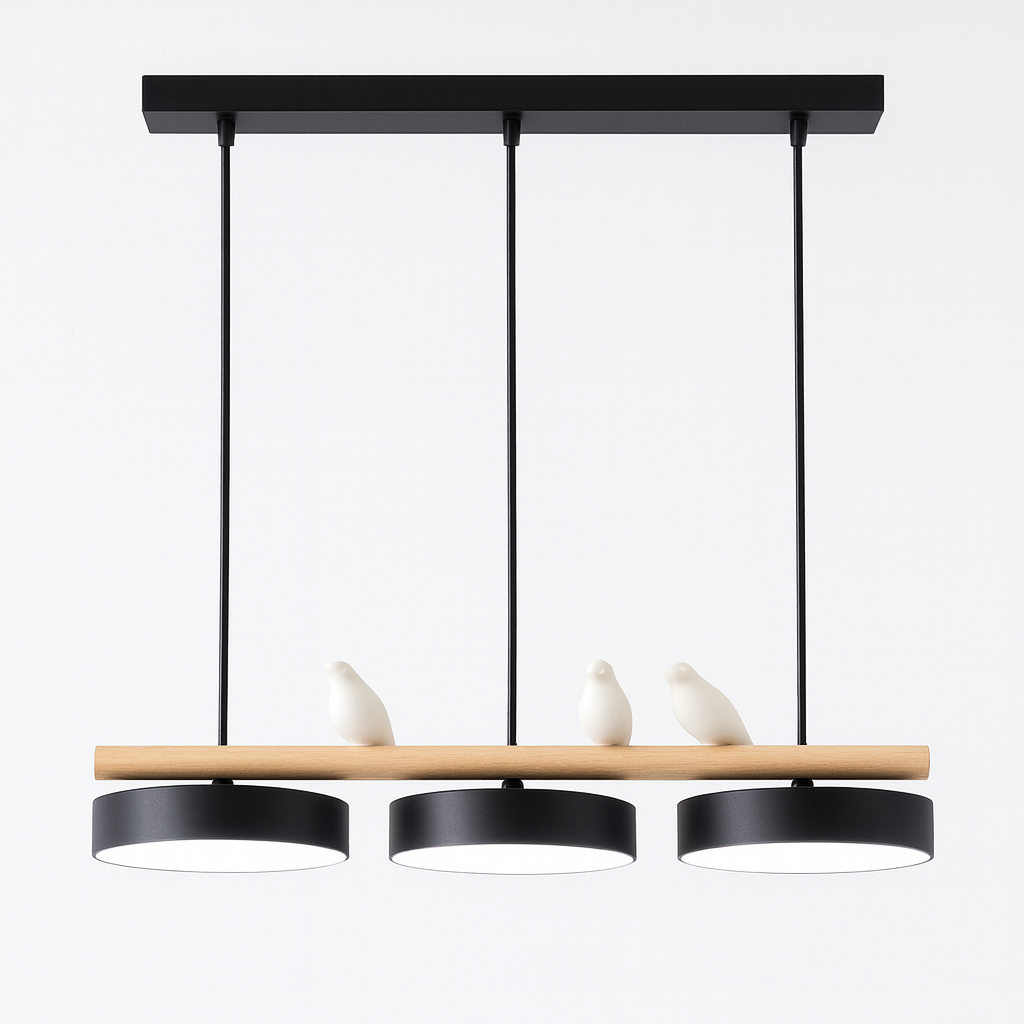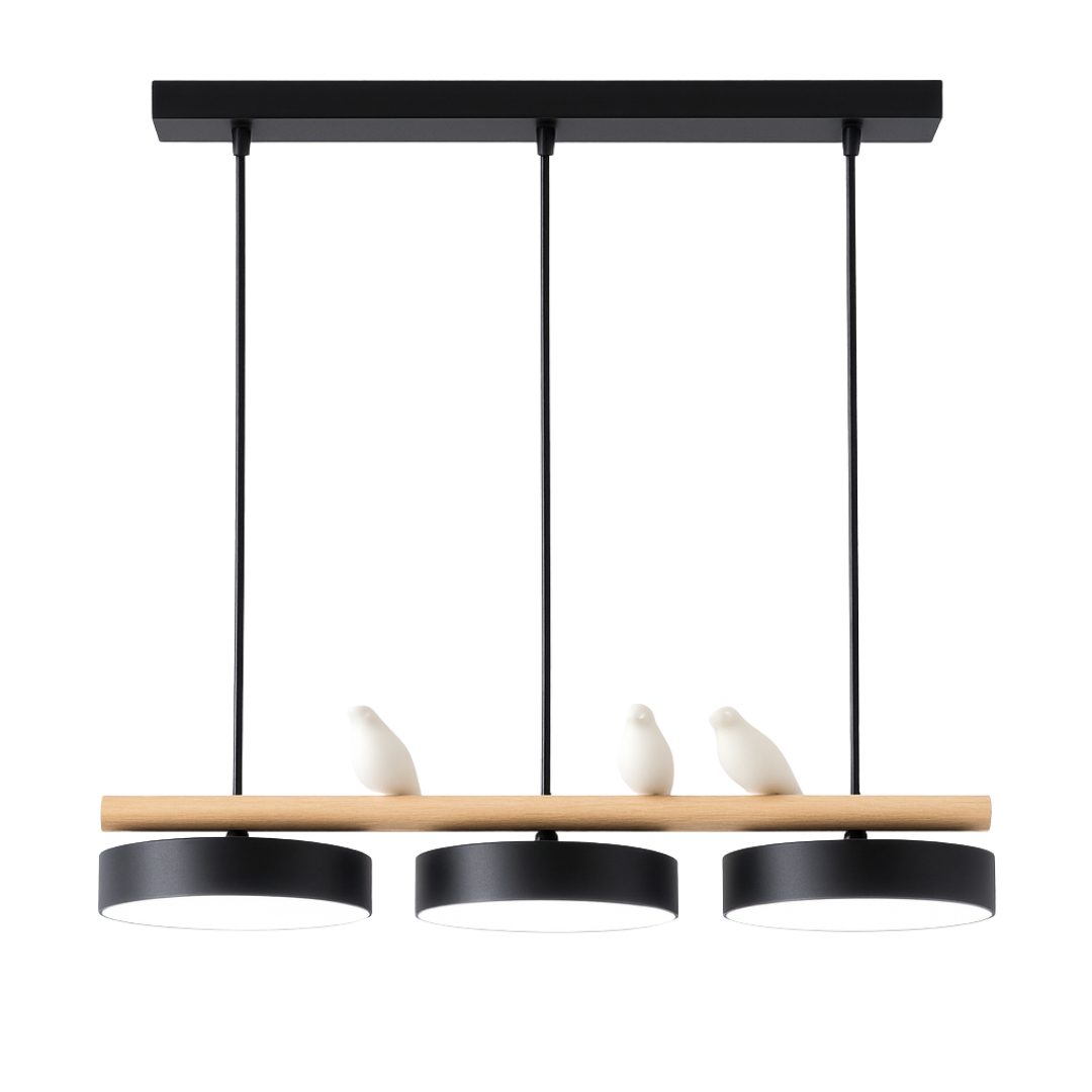 LED Viseća Lampa PENDANT LIGHT D9527-3 – Metal + Drvo + Akril, L80H120cm, Crna, LED 12W3