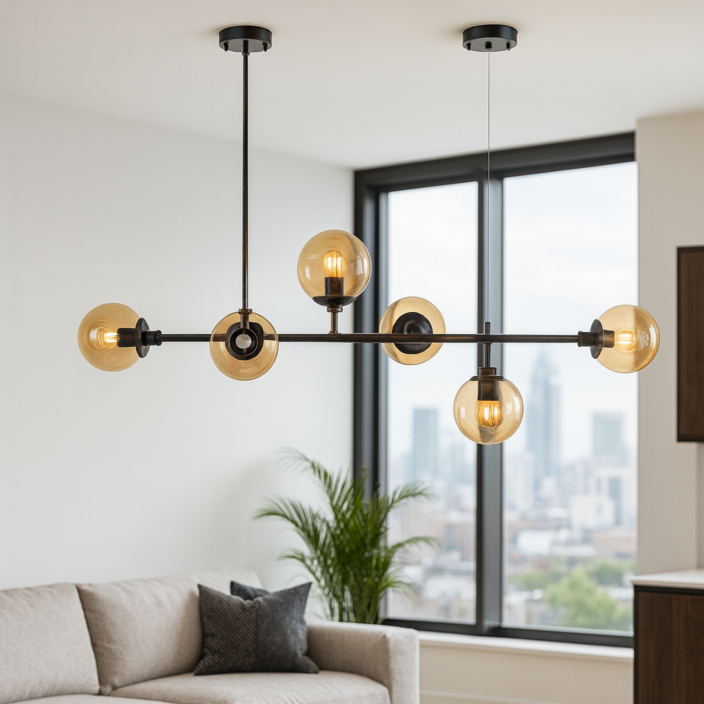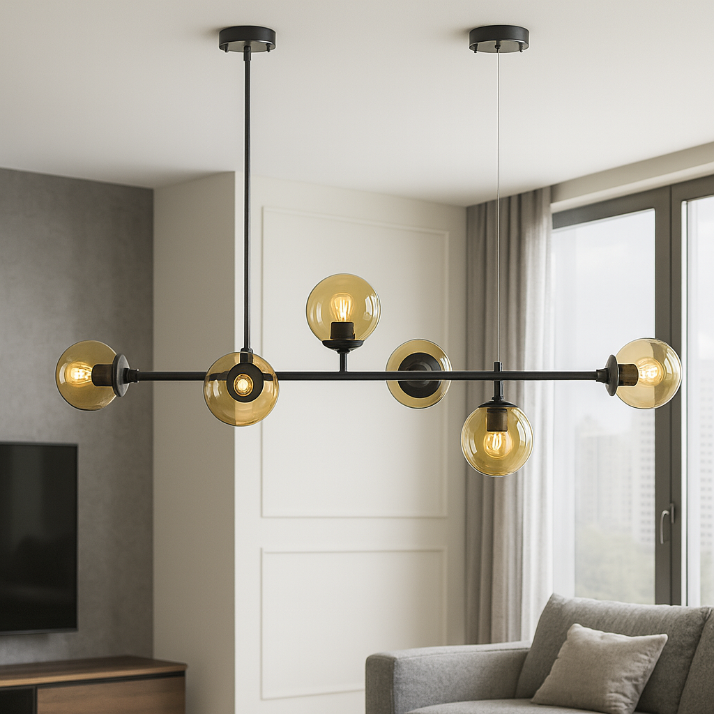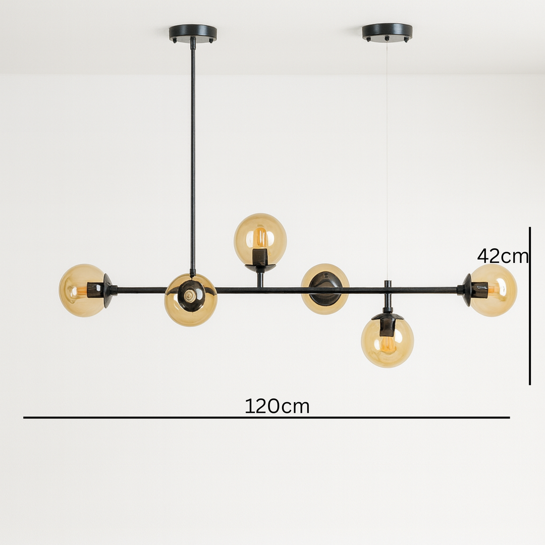 Sa dimenzijama 120 cm (dužina) x 33 cm (širina) x 42 cm (visina), ovaj model je idealan za dnevne sobe, trpezarije, kuhinjske šankove ili moderne poslovne prostore. Opremljen sa 6 E27 grla, pruža snažno i ravnomjerno osvjetljenje, a istovremeno omogućava izbor dekorativnih sijalica prema vlastitom stilu.