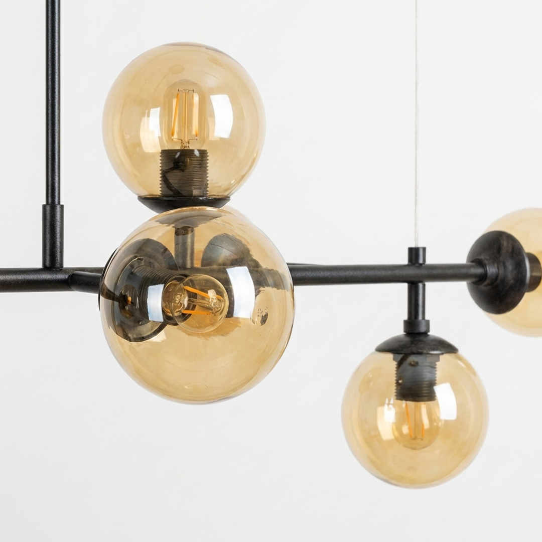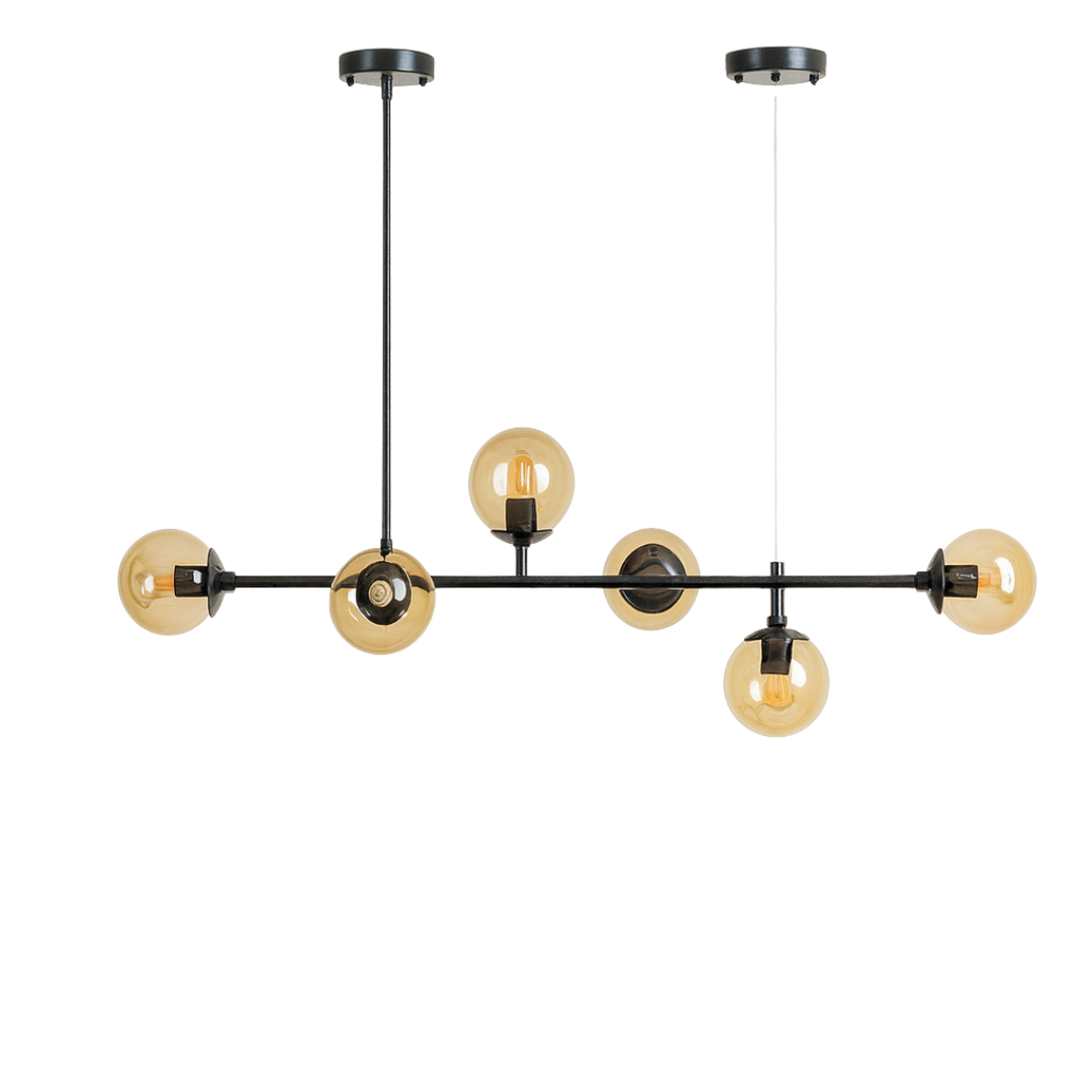 Unesite sofisticiranost i eleganciju u svoj prostor uz luster D8119-6B, izrađen od visokokvalitetne kombinacije metala i stakla. Ovaj viseći luster dolazi u modernoj crnoj boji sa dimno sivim staklenim kuglama, stvarajući savršenu ravnotežu između minimalističkog dizajna i topline ambijenta.