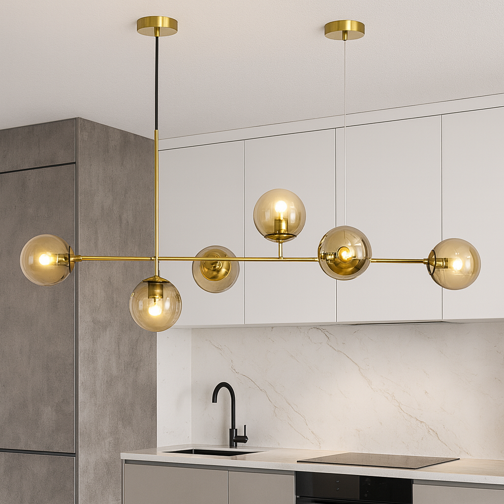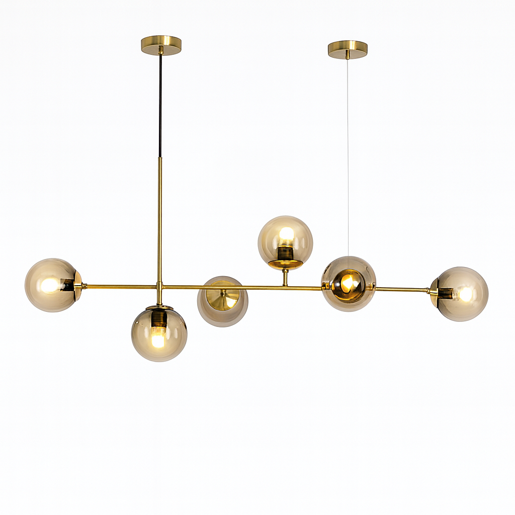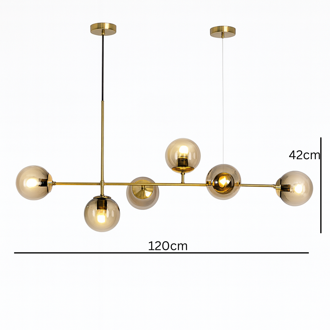 Sa dimenzijama 120×33×42 cm, D8119-6G je idealan izbor za prostrane dnevne sobe, blagovaonice ili moderne kuhinje. Opremljen sa šest E27 grla, pruža dovoljno svjetlosti za ugodnu atmosferu, a istovremeno služi kao upečatljiv dekorativni element.