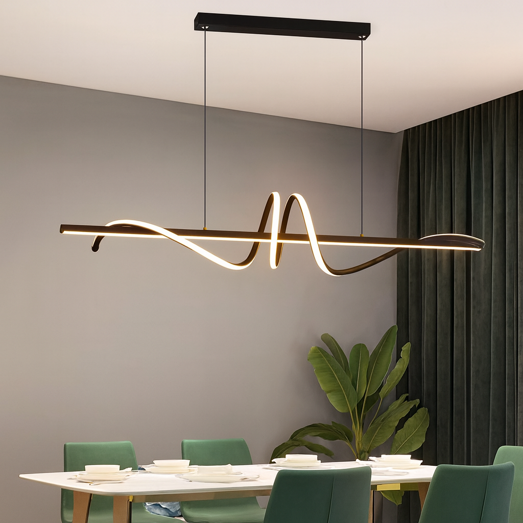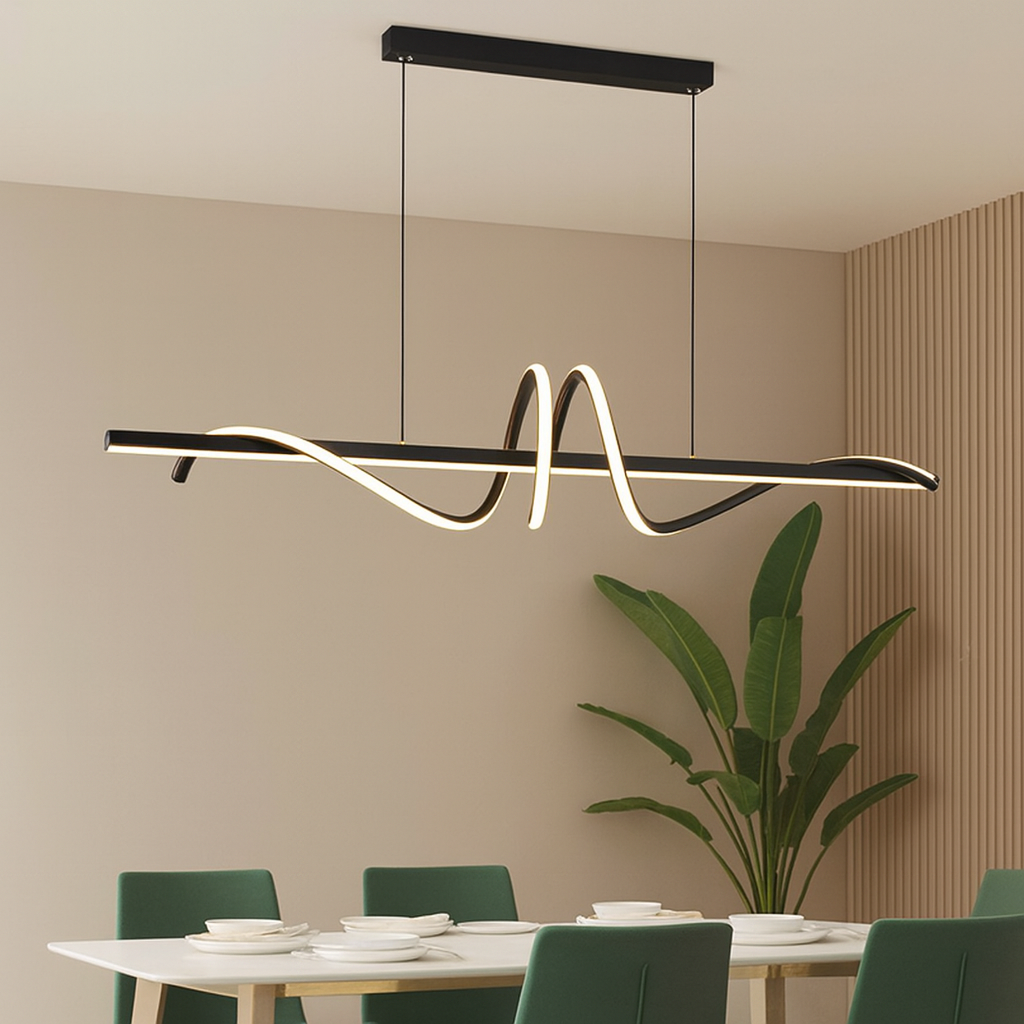 Dodajte modernu umjetničku notu svom enterijeru uz LED viseći luster D2002 Black. Izrađen od metala, aluminija i silikona, ovaj dizajnerski komad donosi kombinaciju minimalizma i kreativnog talasastog oblika koji prostoru daje jedinstven karakter.