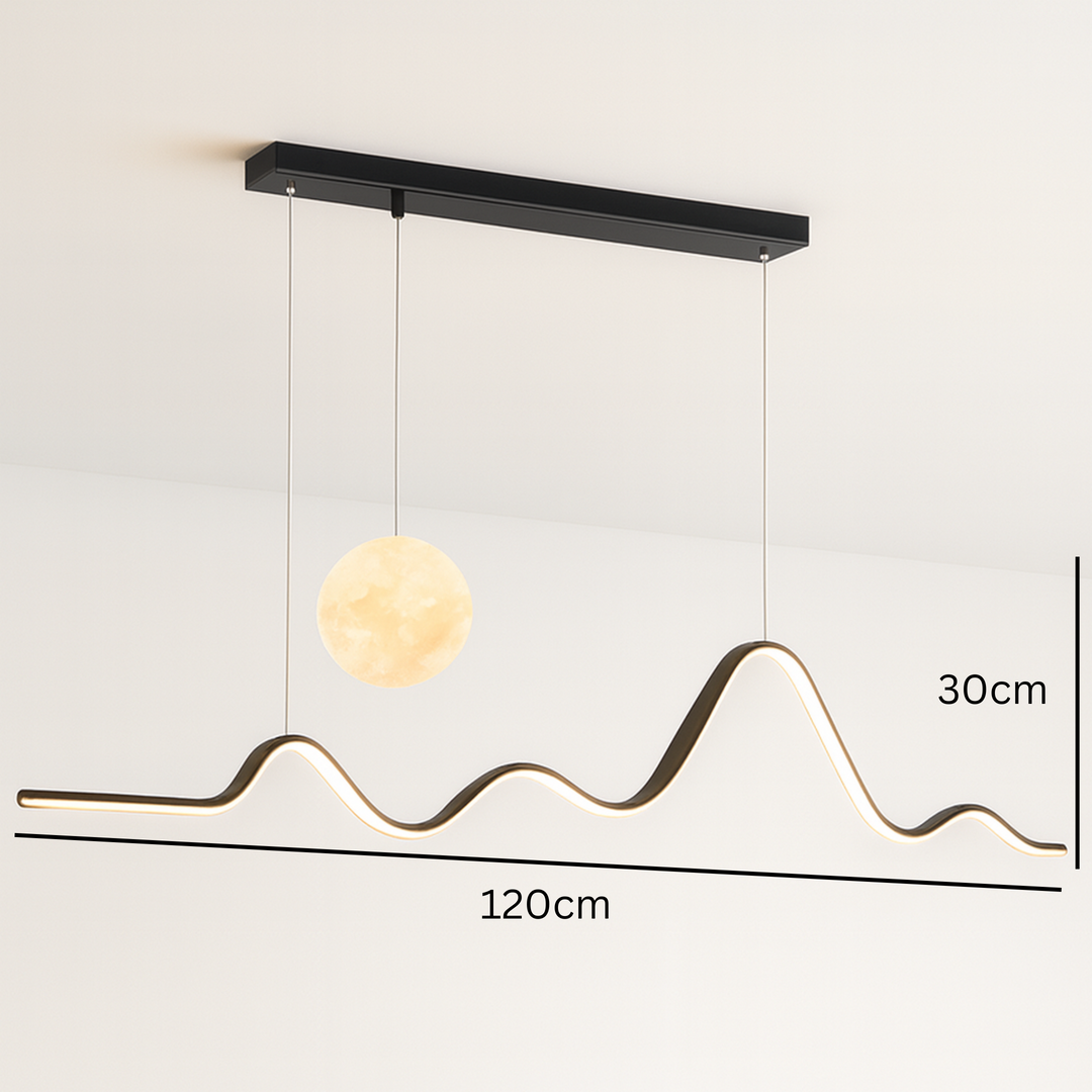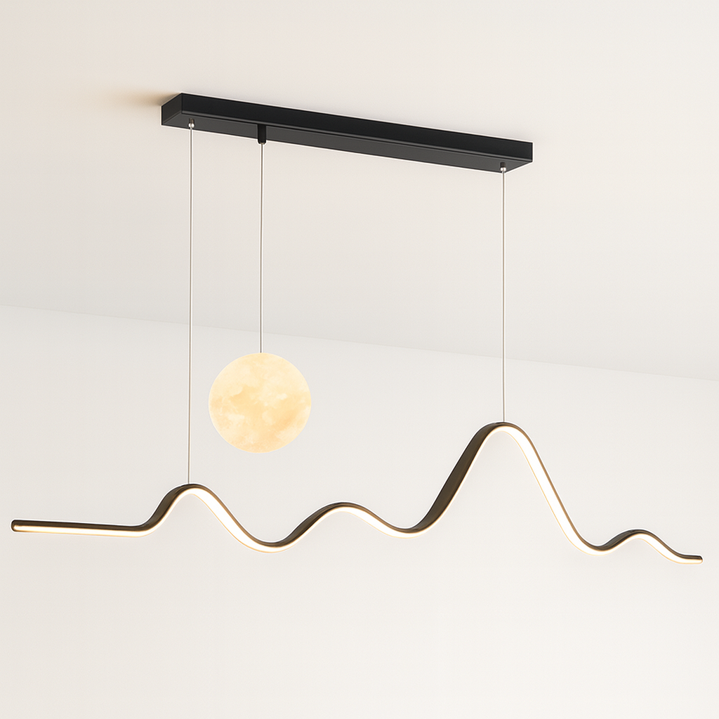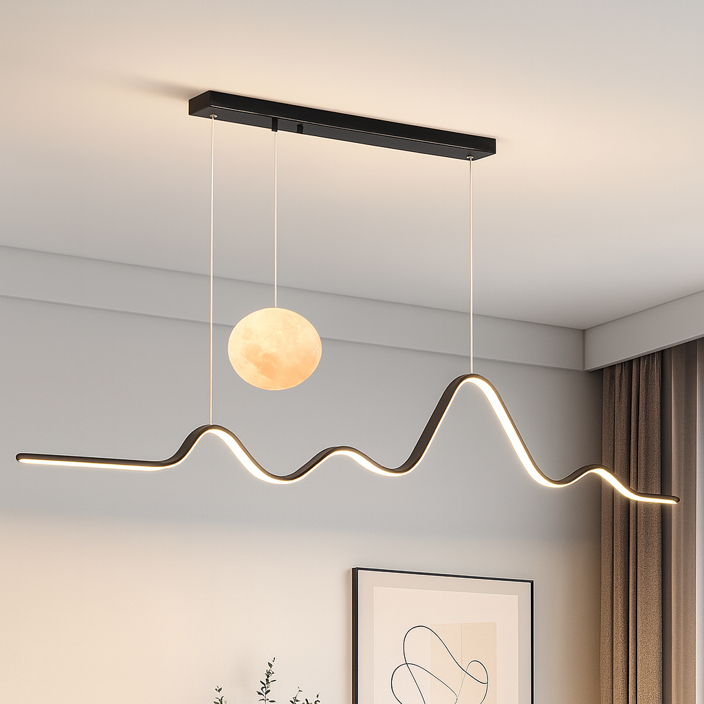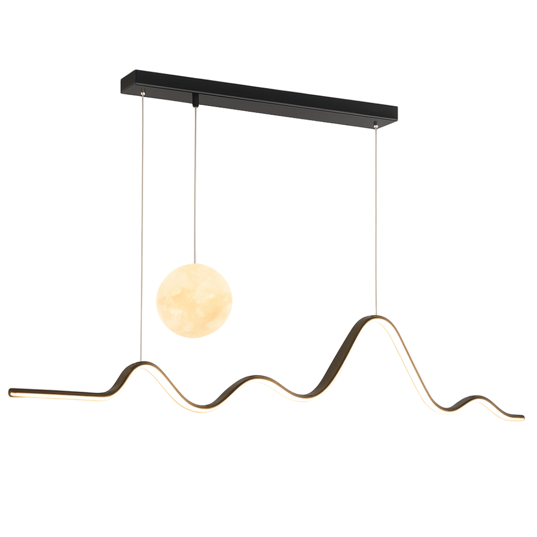 Unesite umjetnički i moderan izgled u svoj prostor uz LED viseći luster D2004. Ovaj jedinstveni model kombinuje talasasti dizajn sa dekorativnom kuglom, stvarajući upečatljiv vizuelni efekat i prijatnu svjetlosnu atmosferu. Izrađen od metala, aluminija i plastike, pruža trajnost i vrhunski estetski dojam.