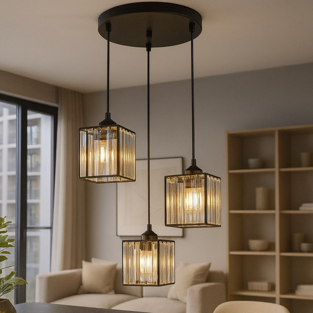 Elegantni viseći luster sa staklenim kockama – Model D8048-3SQ Black