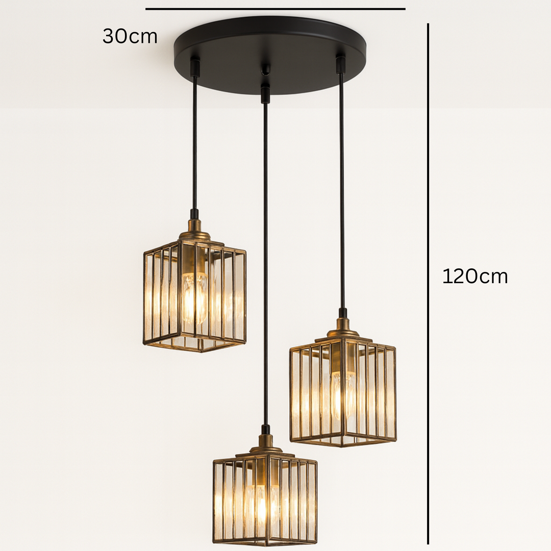 Sa dimenzijama D30 x H120 cm, uz abažure veličine D14 x H13 cm i plafonsku ploču od 30 cm, savršeno se uklapa u trpezarije, dnevne sobe, hodnike ili spavaće sobe. Opremljen je sa E27 x 3 grla, što omogućava izbor sijalica po želji – od toplih do hladnih tonova osvjetljenja.