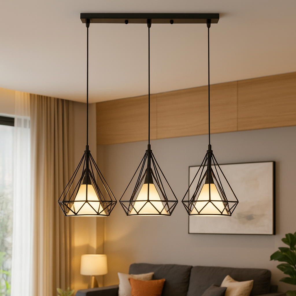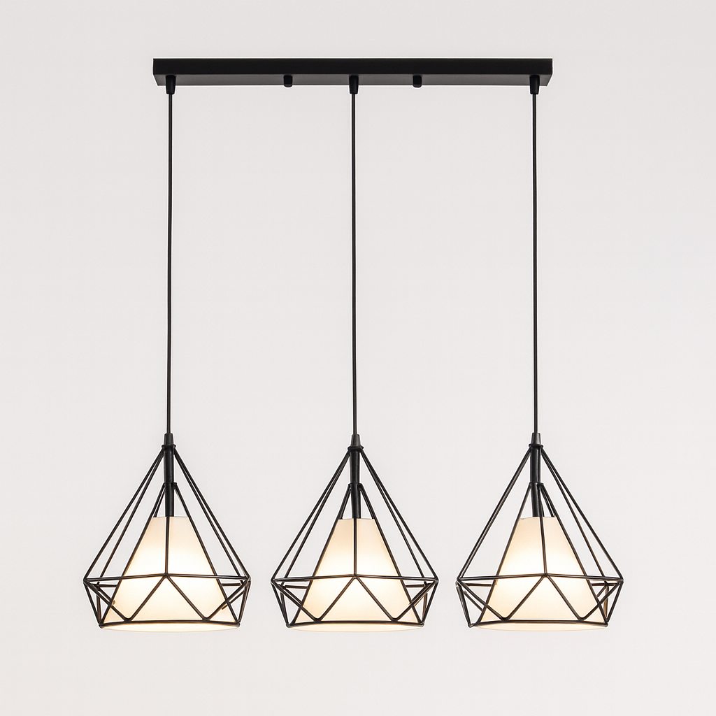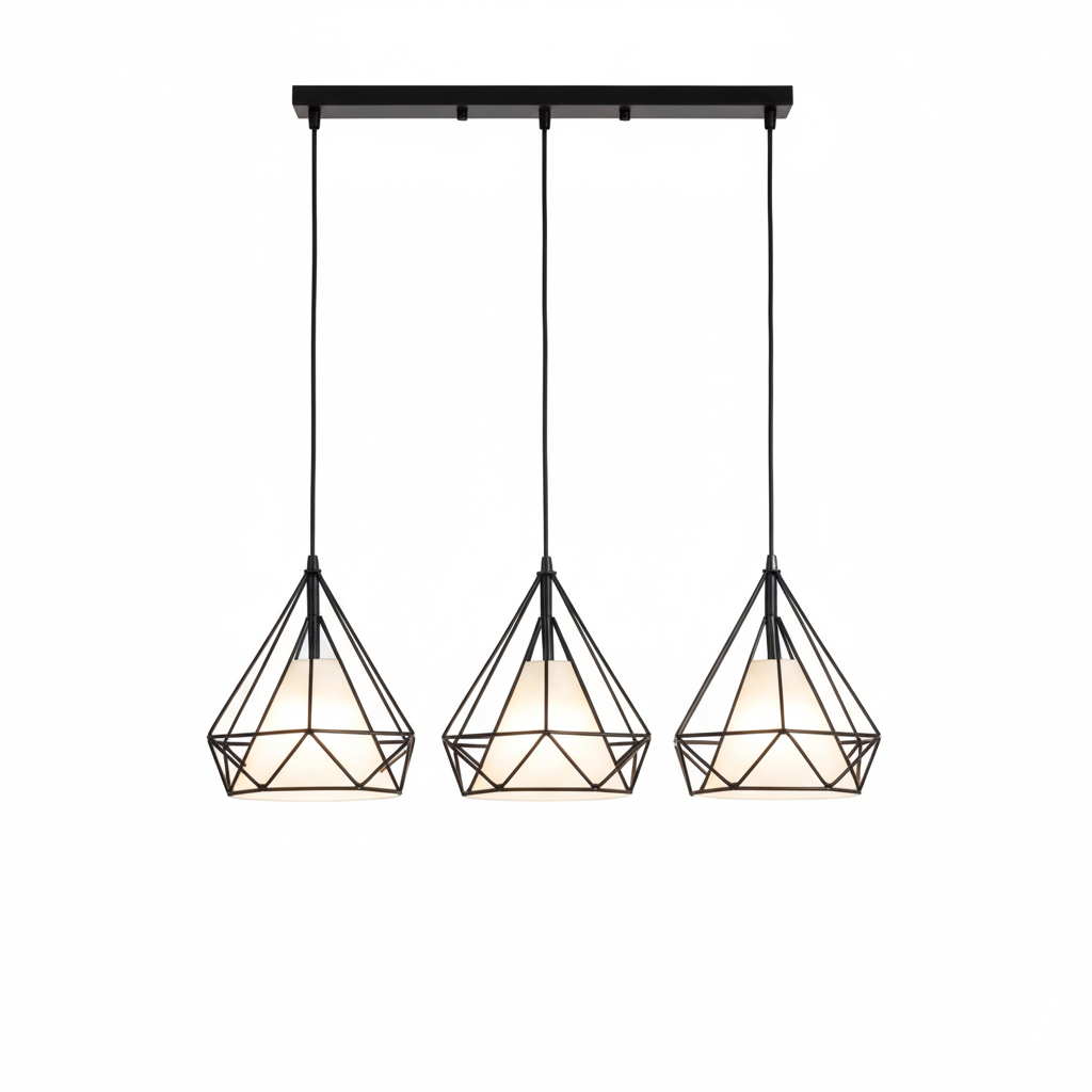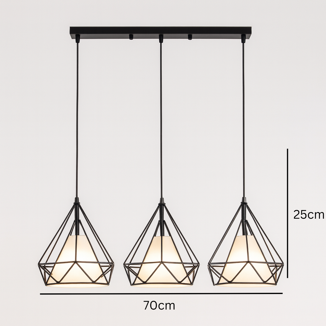 Sa dimenzijama D70 × Š25 × V25 cm i podesivim kablom do 100 cm, ovaj luster se lako prilagođava visini prostora. Tri sjenila ravnomjerno raspoređuju svjetlost, stvarajući toplu i prijatnu atmosferu u trpezariji, kuhinji, kafiću ili dnevnom boravku.