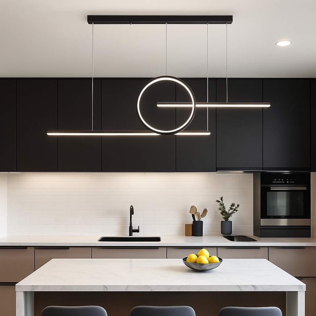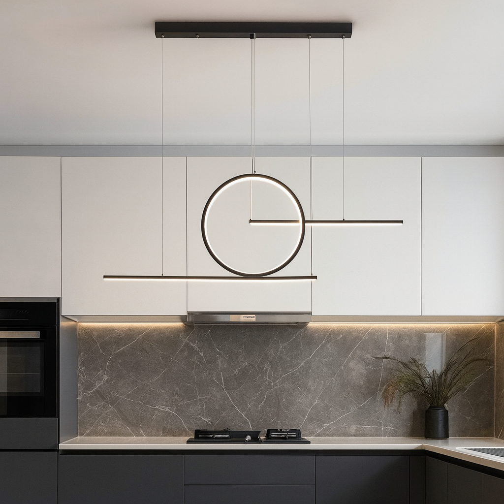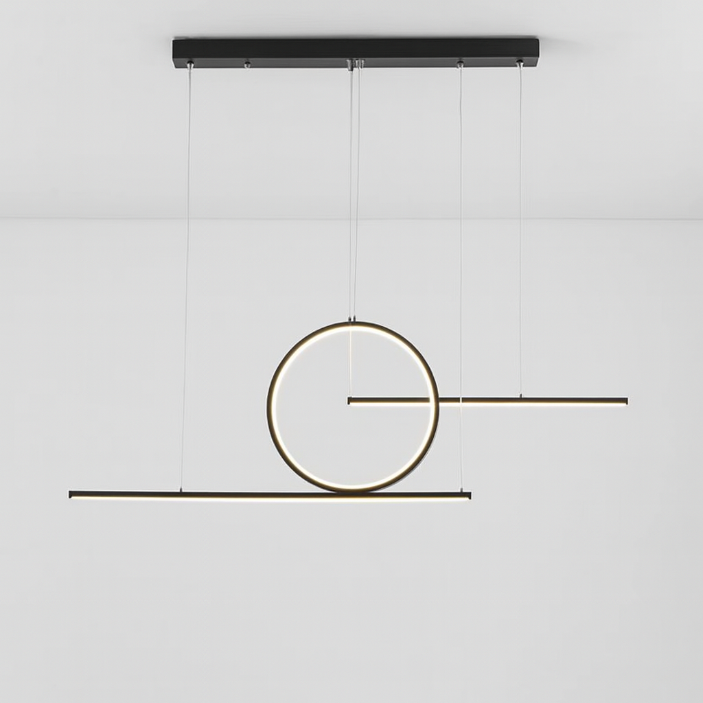 Unesite eleganciju i savremenost u svoj prostor uz LED Pendant Light D8102-Black. Ovaj atraktivni viseći luster izrađen je od metala, aluminijuma i silikona, u crnoj boji, a njegov inovativni dizajn sa kružnim i linearnim elementima čini ga pravim izborom za moderne enterijere.