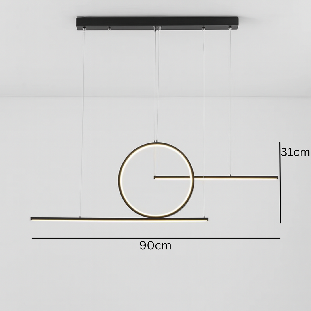 Sa dimenzijama D90 × V31 cm i podesivom dužinom kabla do 120 cm, luster se savršeno uklapa u trpezarije, dnevne boravke, kancelarije ili restorane. Integrisano LED svjetlo od 30W pruža snažno, ali prijatno osvjetljenje koje je energetski efikasno i dugotrajno.