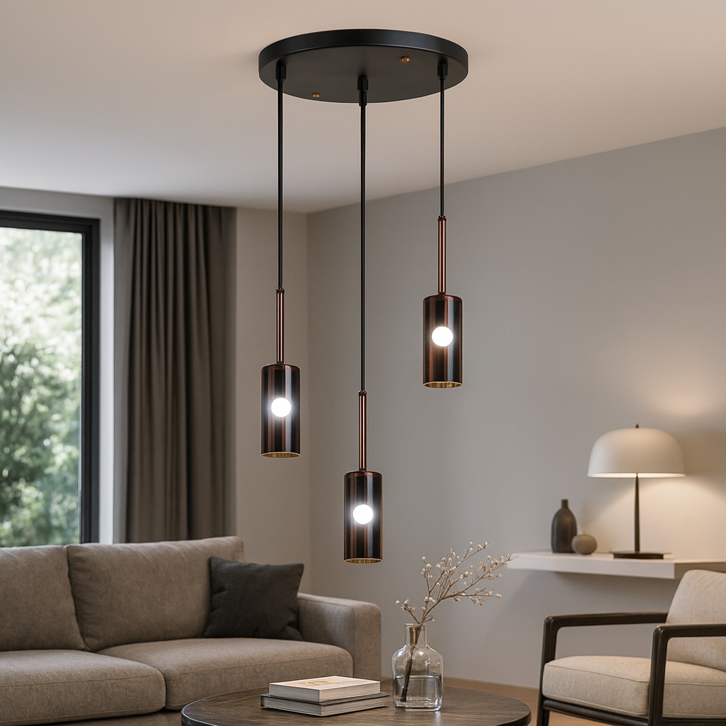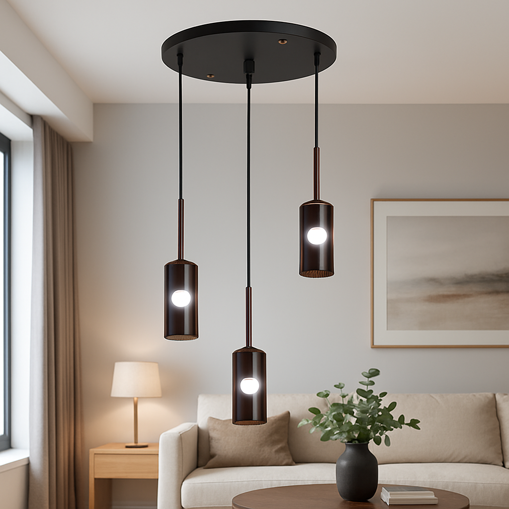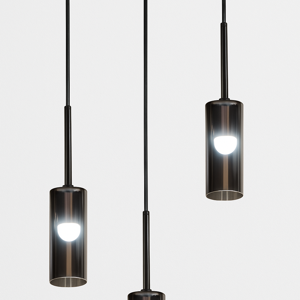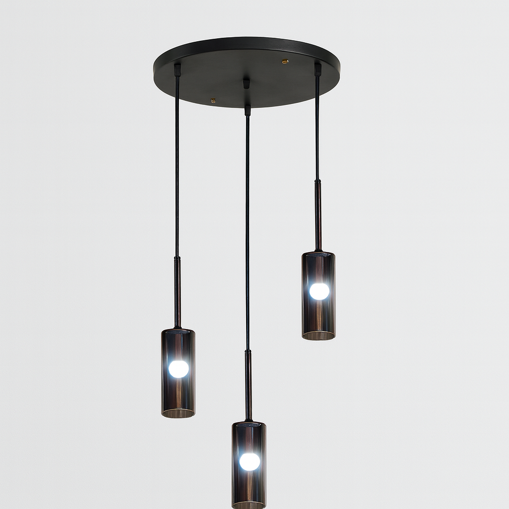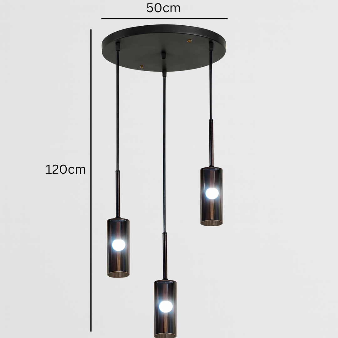 ✔ Moderan dizajn sa tri viseće lampe u staklenim cilindrima
