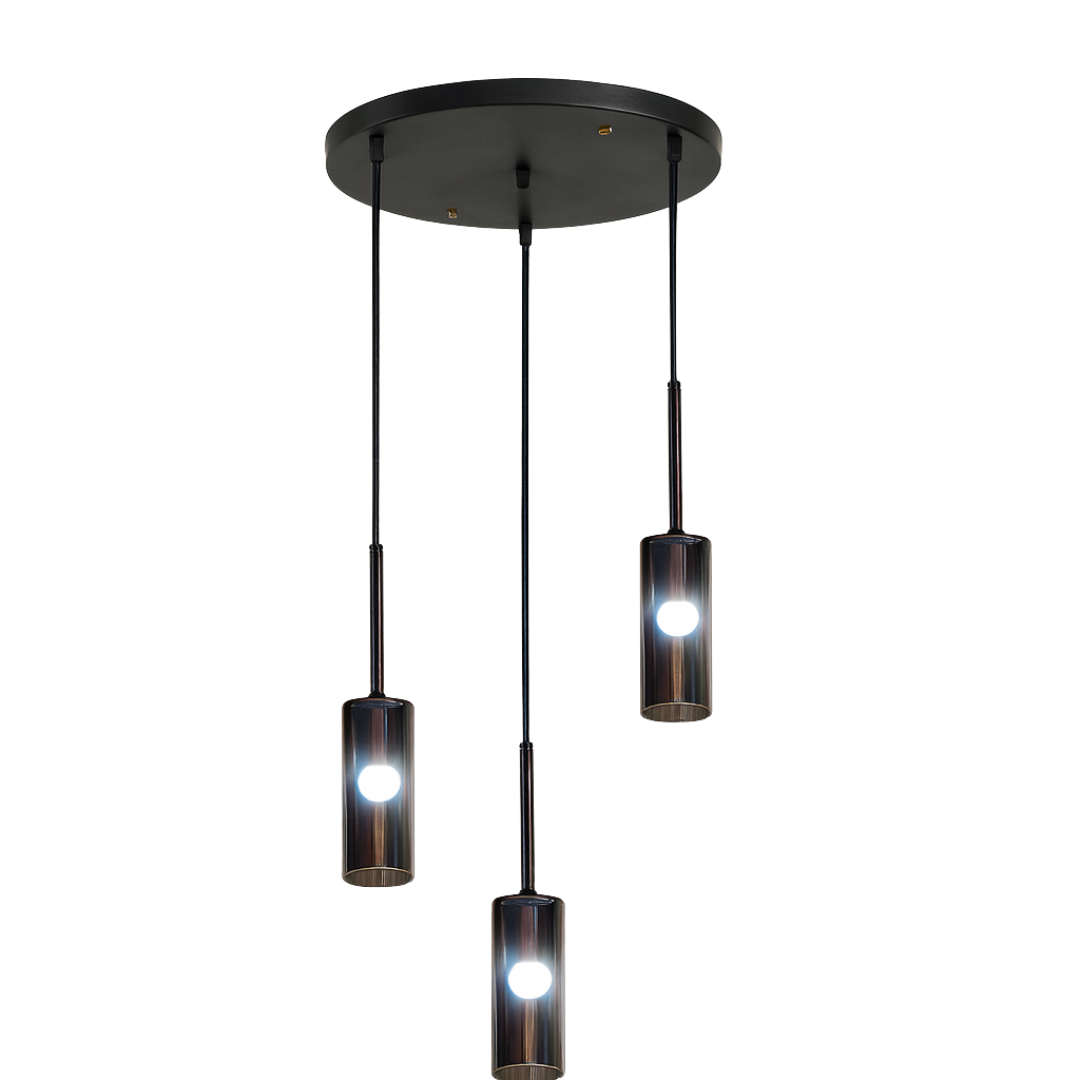 Unesite sofisticiranost i moderan stil u svoj prostor uz viseći luster PENDANT LIGHT D8039-3. Sa tri cilindrična staklena sjenila i čvrstom metalnom konstrukcijom u crnoj boji, ovaj luster pruža toplu i prijatnu rasvjetu idealnu za različite enterijere.