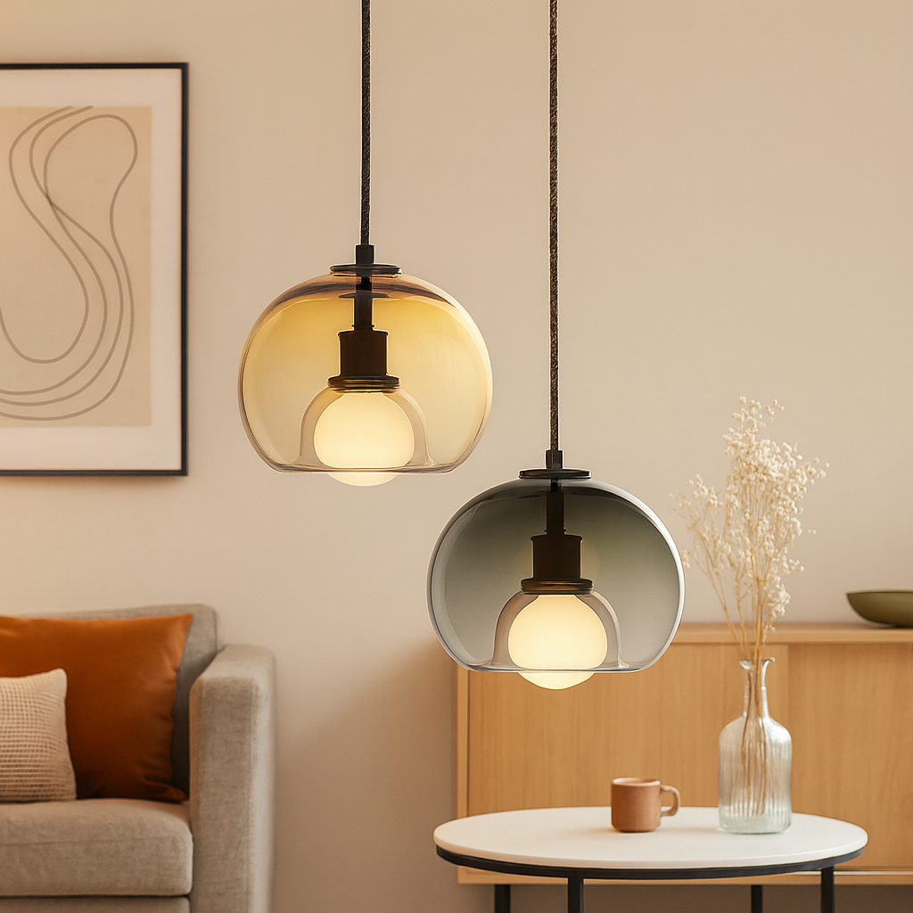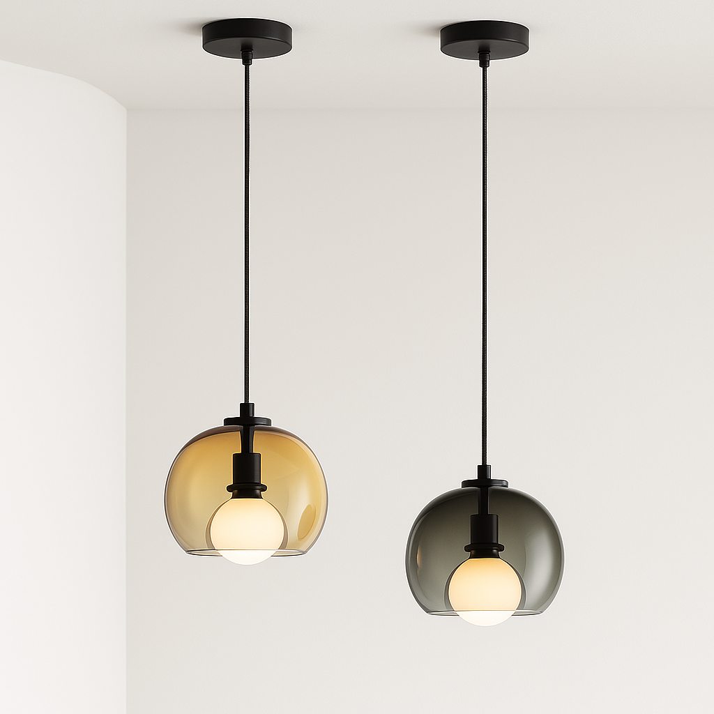 Smoky gray nijansa stakla stvara prijatan ambijent, dok standardno E27 grlo omogućava kompatibilnost sa širokim izborom sijalica (LED, štedne ili klasične).