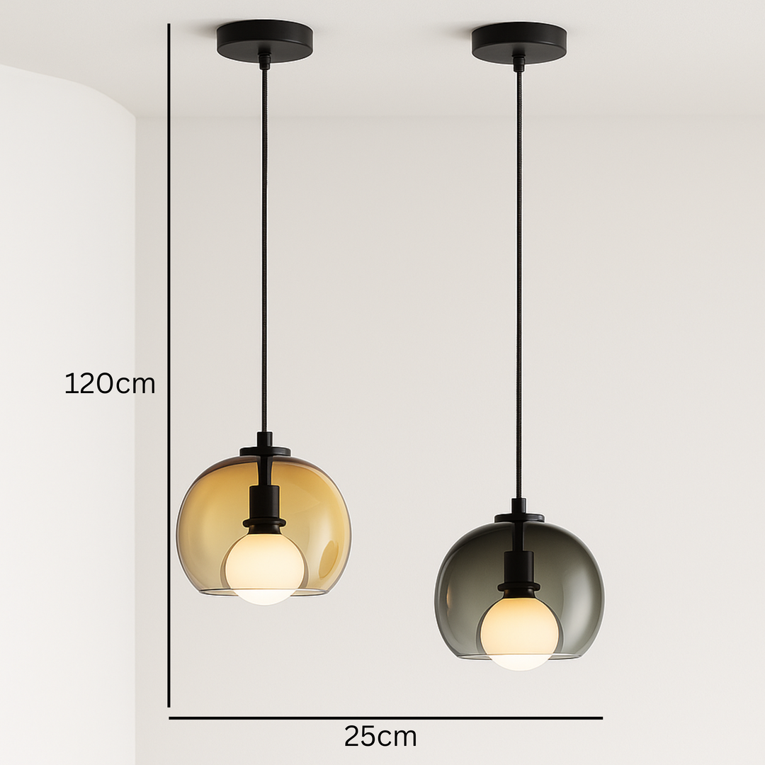 Elegantna viseća lampa PENDANT LIGHT D8211 – Metal + Staklo, D25*H120cm, podesiva žica, Smoky Gray, E27