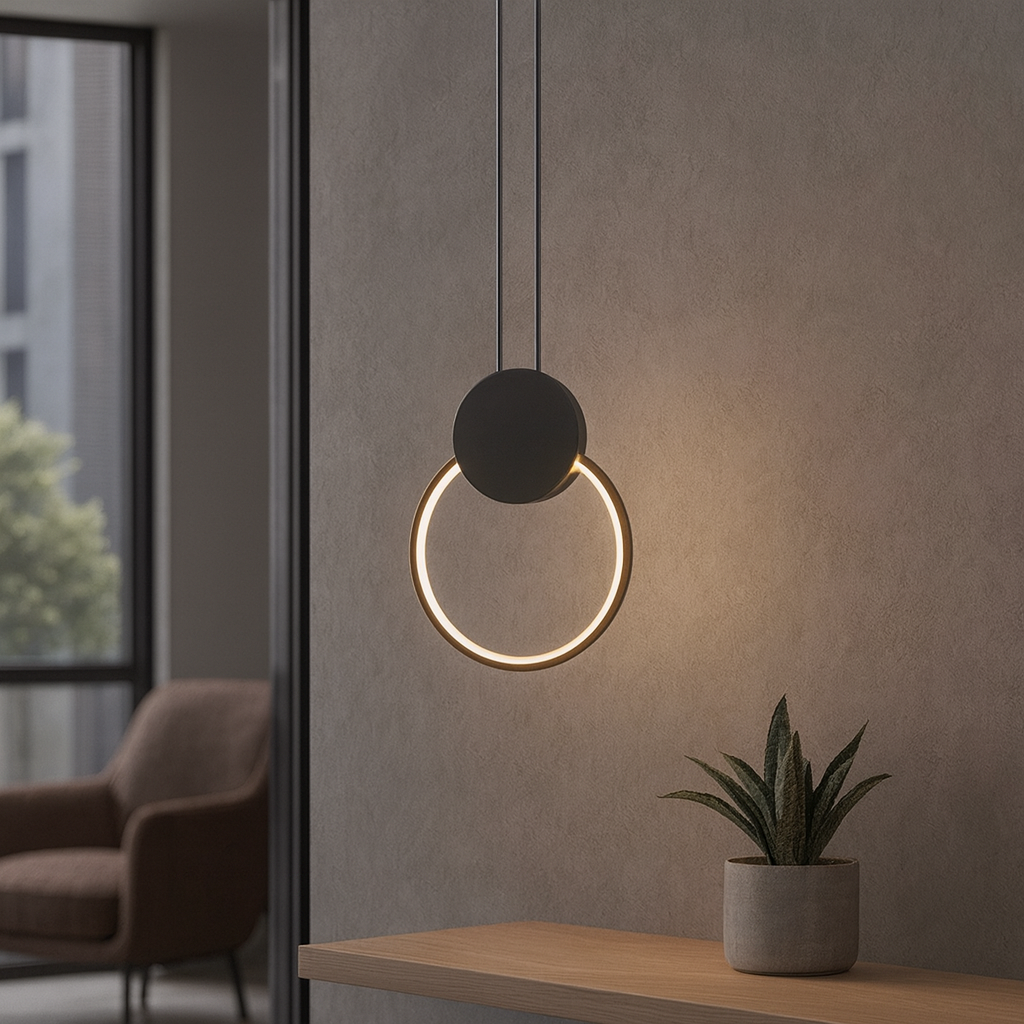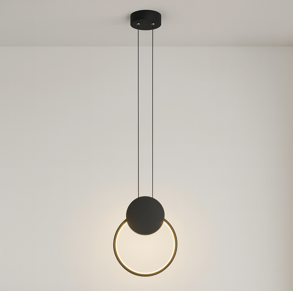 Unesite modernu eleganciju u svoj prostor uz LED viseći luster PENDANT LIGHT D8124-1 Round. Sa jednostavnim kružnim oblikom u crnoj završnoj obradi i aluminijskim detaljima, ovaj model odiše minimalizmom i sofisticiranošću.