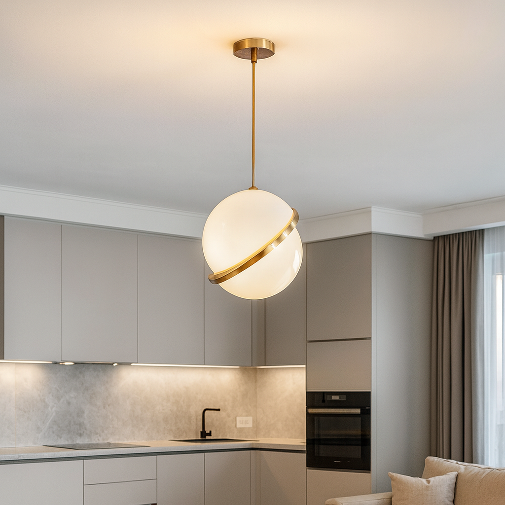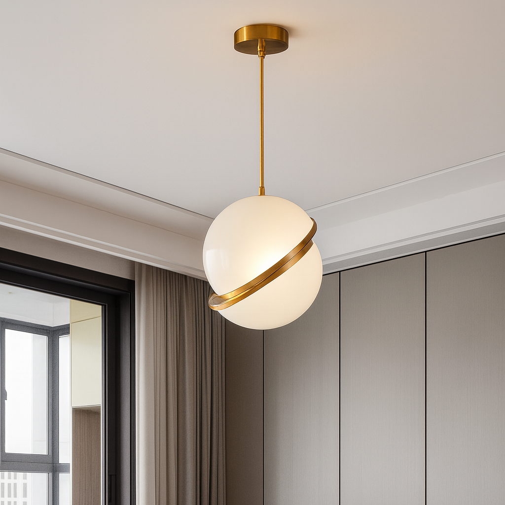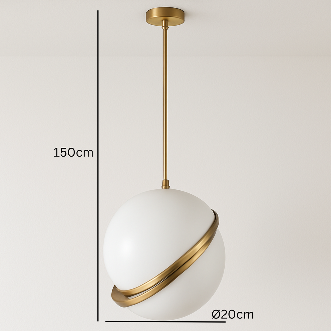 Unesite luksuz i toplinu u svoj prostor uz viseći luster PENDANT LIGHT D8028/200. Ovaj moderan model izrađen od metala i stakla u kombinaciji zlatne i mliječno bijele boje odiše sofisticiranošću. Sa elegantnom sfernom formom prečnika 20 cm, ovaj luster stvara prijatan ambijent i savršen je kao dekorativni akcenat u različitim enterijerima.