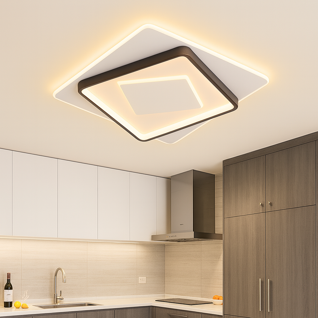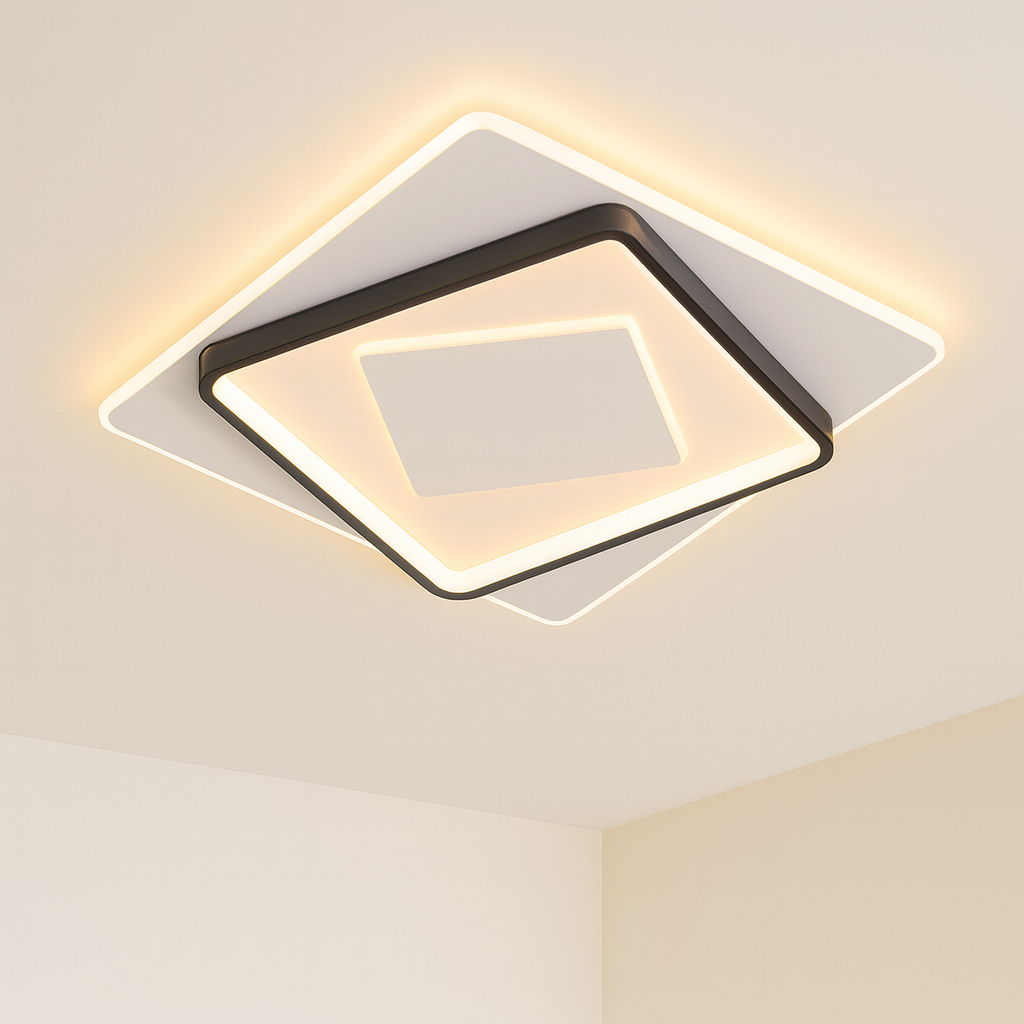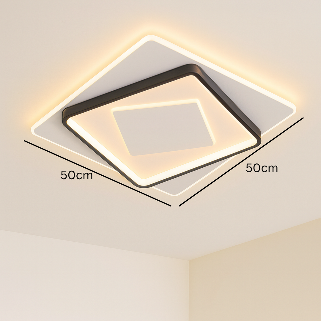 Sa dimenzijama 50 × 50 cm, ovaj model pruža ravnomjerno osvjetljenje i postaje centralni dekorativni element u prostoriji. Zahvaljujući dvostrukom LED sistemu snage 60W × 2, lampa obezbjeđuje snažno, ali prijatno svjetlo, idealno za dnevne boravke, trpezarije, spavaće sobe ili poslovne prostore.