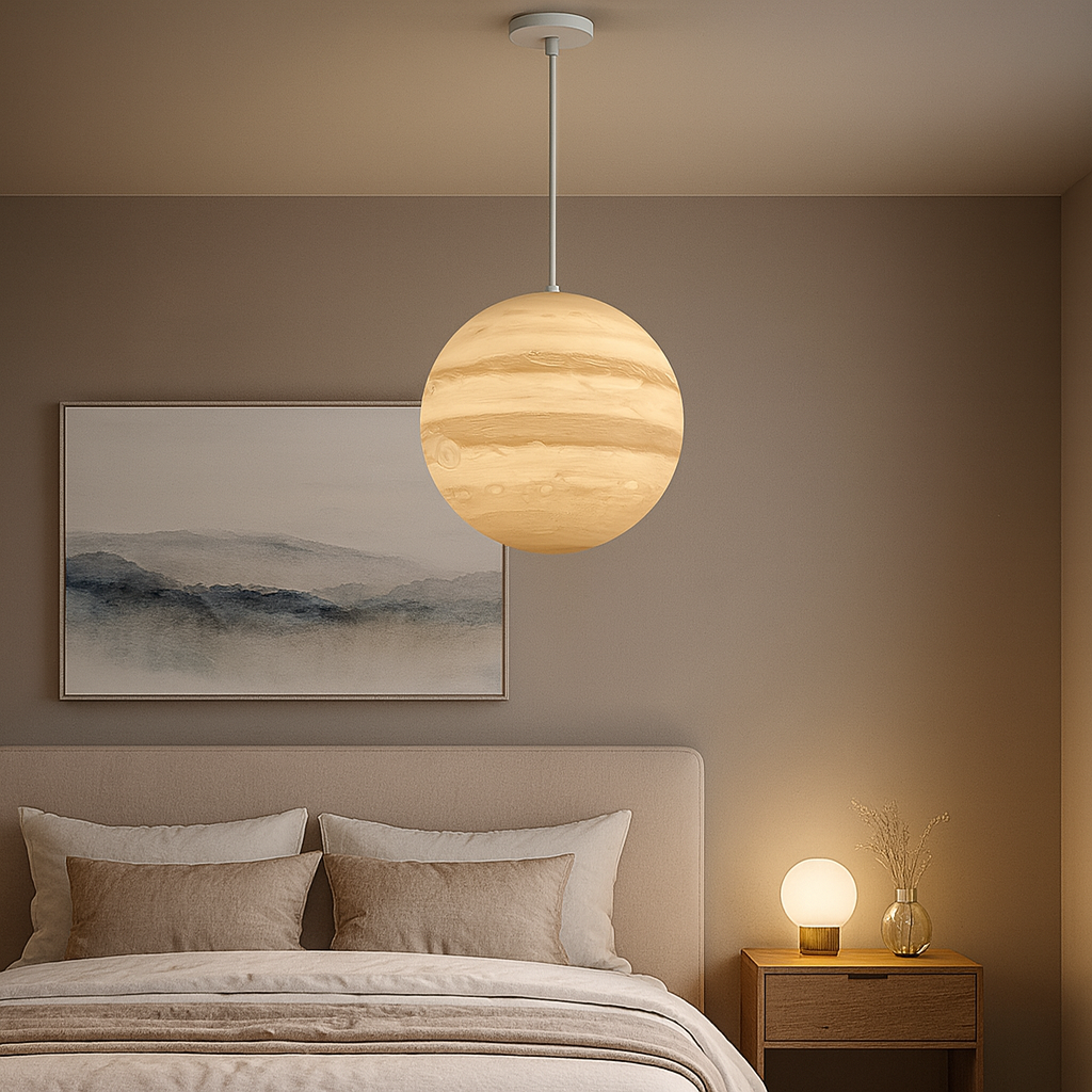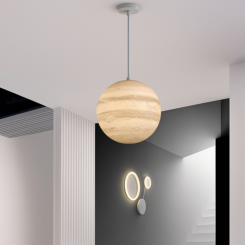 Unesite svemirsku atmosferu u svoj prostor uz jedinstvenu 3D Print Jupiter viseću lampu. Ova moderna lampa inspirisana je izgledom planete Jupitera i izrađena pomoću napredne 3D print tehnologije. Kombinacija metala i PLA materijala čini je laganom, ali čvrstom, dok bijela boja i detaljno oblikovana tekstura stvaraju realističan i dekorativan efekat.