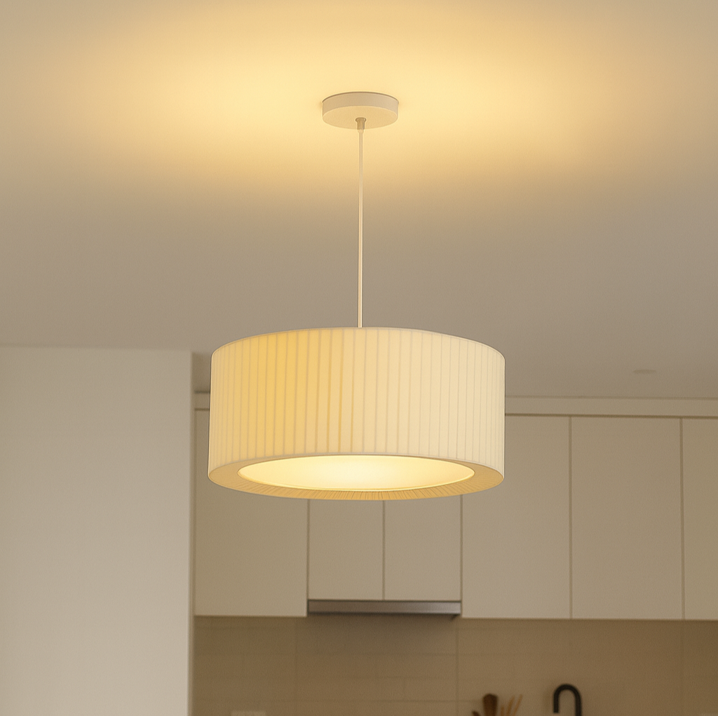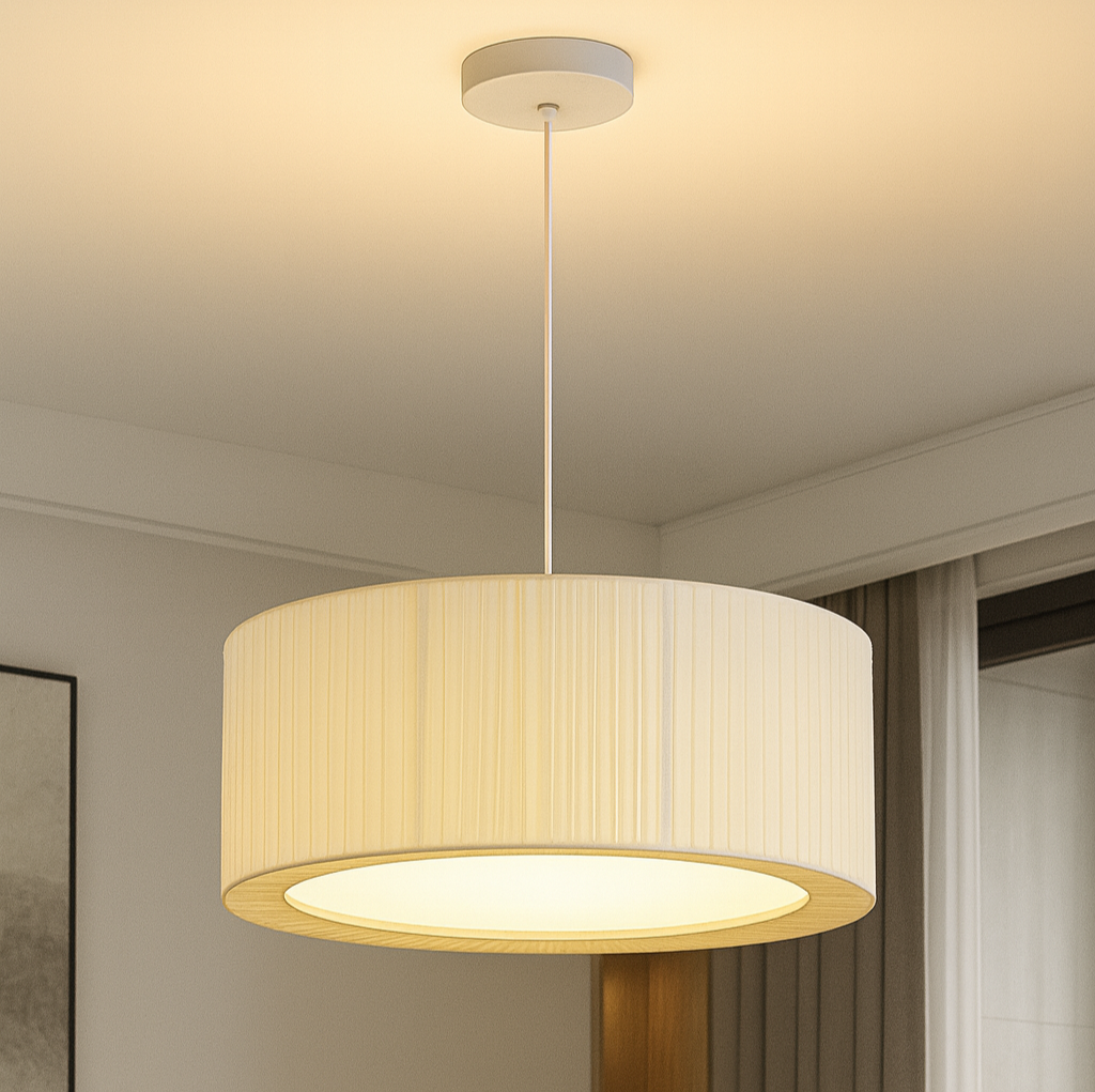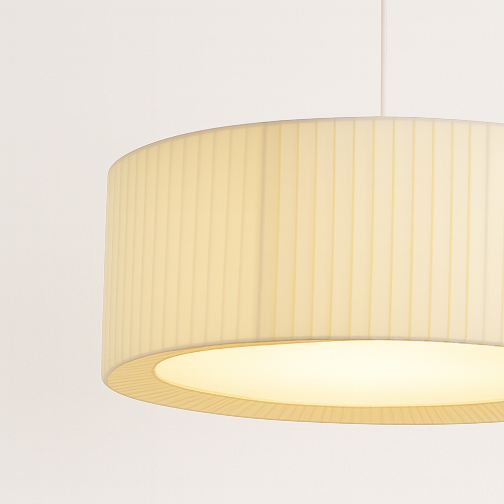 Bijela tkanina difuzuje svjetlost i stvara ugodnu atmosferu, dok podesiva visina omogućava savršeno pozicioniranje lampe prema vašem prostoru.